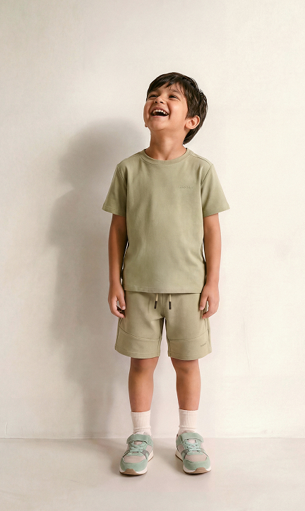 Moda para criança em tons adoráveis! Esta coleção vai conquistar as crianças com t-shirts encantadoras, calções, leggings e vestidos que criam um look em segundos!