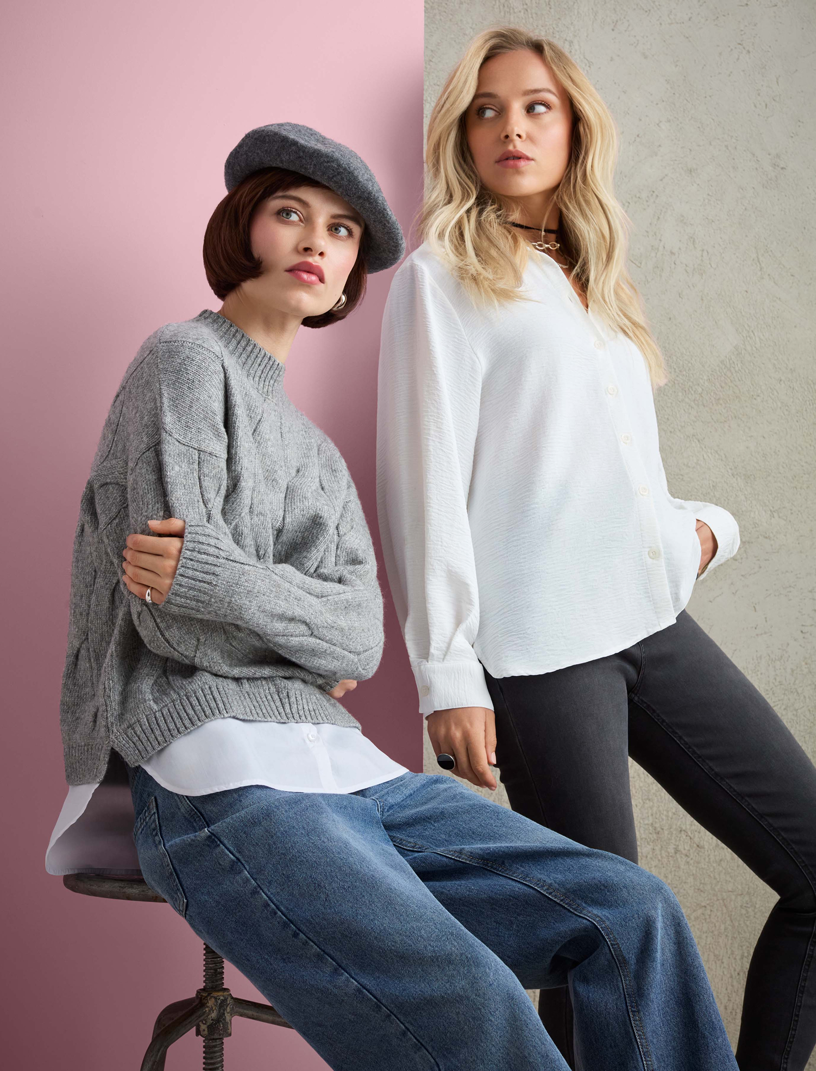 Camisolas quentes e macias perfeitas para o outono-inverno, conjuntos minimalistas que aliam conforto e modernidade, camisas versáteis e jeans intemporais para o teu dia a dia. O teu estilo está aqui — com toda a elegância e ao melhor preço.