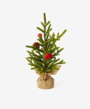 A árvore de Natal artificial com pinhas e bagas vermelhas, está pronta a usar! O tamanho compacto torna-a perfeita para espaços mais pequenos – pode ser colocada numa mesa, cómoda ou secretária, sem necessidade de mais enfeites.