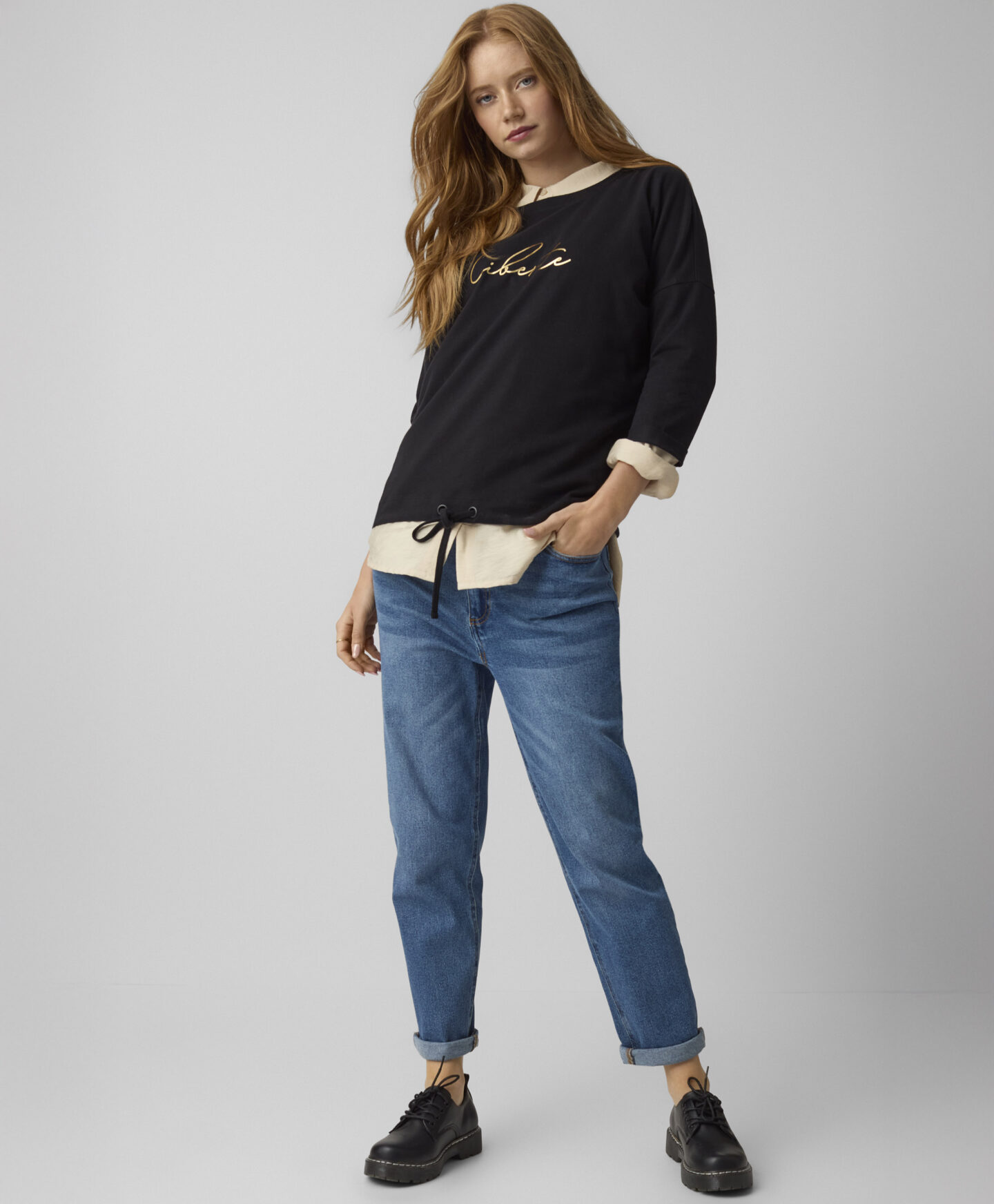 A blusa com atilho, em 100% algodão, é uma combinação de conforto e design moderno. É respirável e agradável ao toque. Combina-a com calças de ganga, calções ou saias, e cria vários looks!