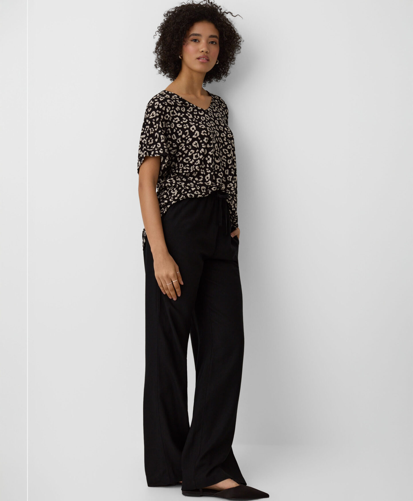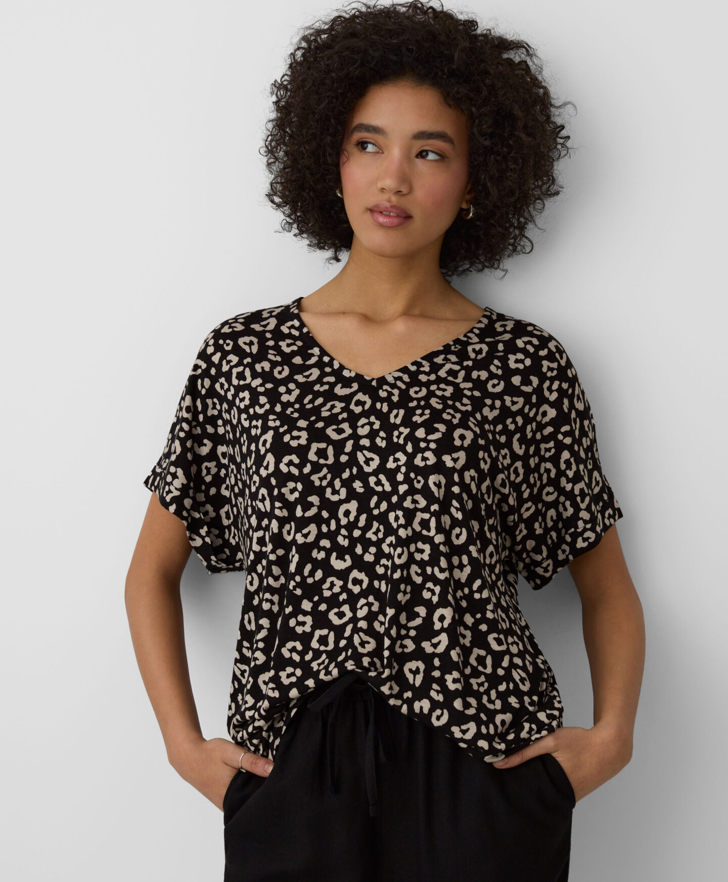 A blusa em 100% viscose com decote em V combina conforto e versatilidade. Combina com calças de ganga, chinos ou estilo cigarette. Ideal para o escritório, compras rápidas ou passeios em família.
