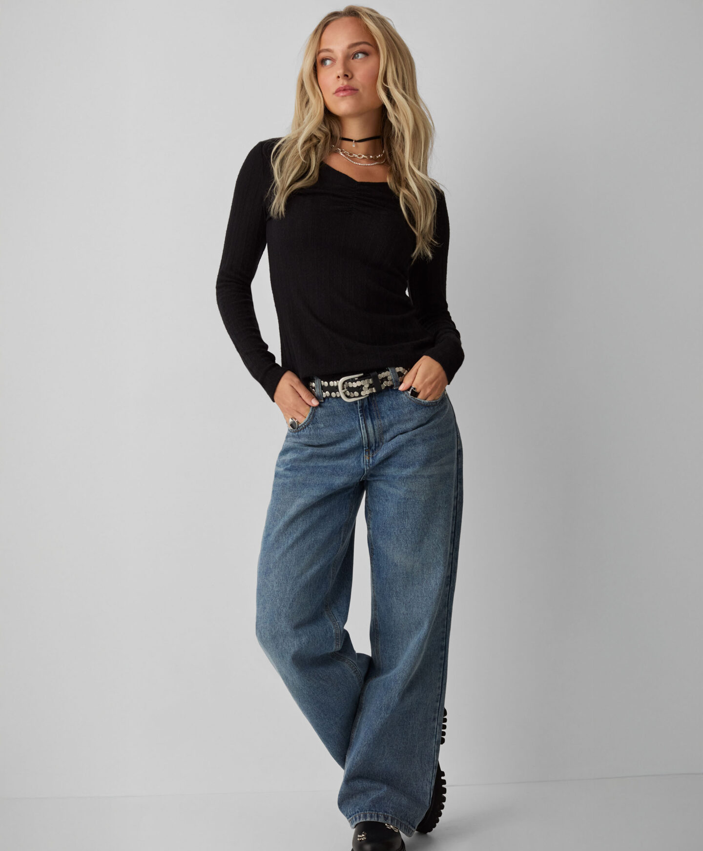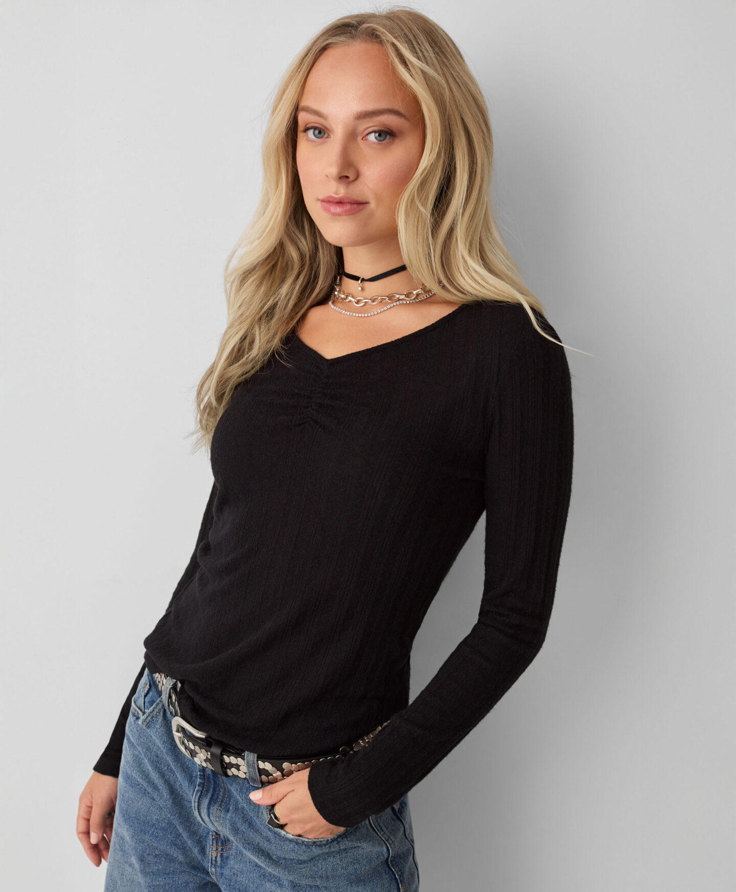 A blusa com franzido foi pensada para quem gosta de um estilo clássico. Fica ótima por baixo de um blazer ou camisola oversized nos dias frios, garantindo mais aconchego. O tom versátil é fantástico para qualquer ocasião.