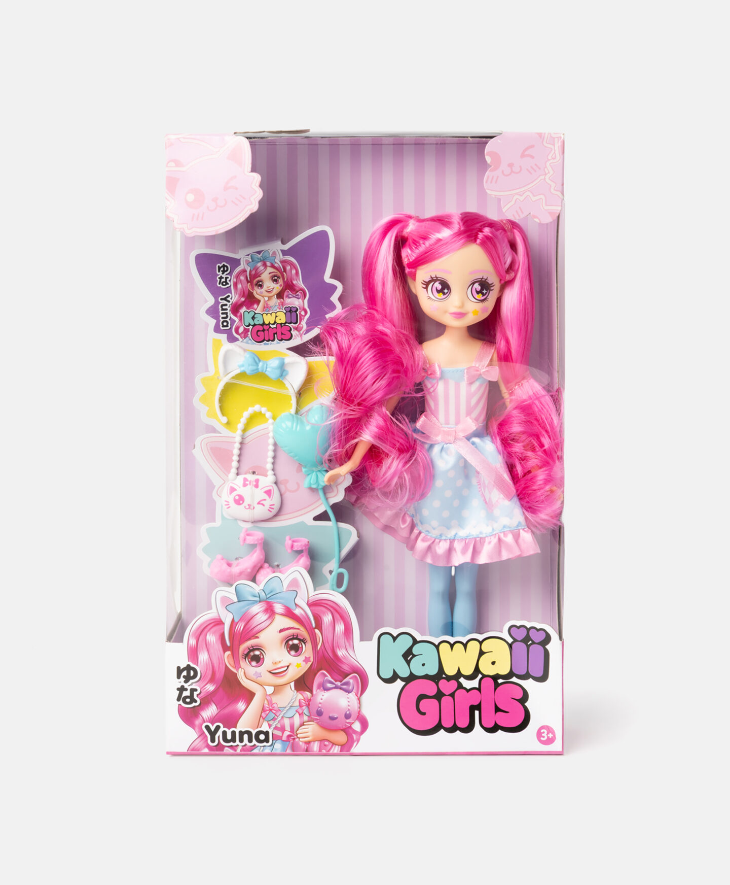 A boneca Kawaii Girls é perfeita para pequenas fãs de moda. O conjunto inclui uma boneca com um bonito vestido e acessórios adicionais como uma bandolete, mala, sapatos e balão, que estimulam a criatividade e a imaginação. As crianças podem vestir a boneca com diferentes combinações e criar os seus próprios cenários de brincadeira. Adequado para crianças a partir dos 3 anos.