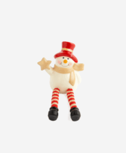 Boneco de neve em cerâmica com pernas penduradas