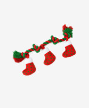 O brinquedo tipo tug com meias permite ao cão gastar energia e é ótimo para puxar. Inclui uma corda trançada com elementos suaves que incentivam agarrar e mastigar. Combina durabilidade e leveza.