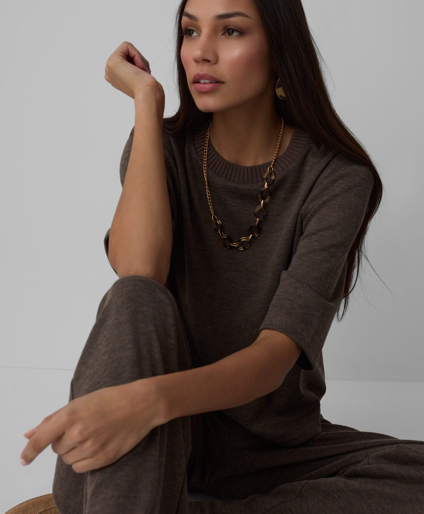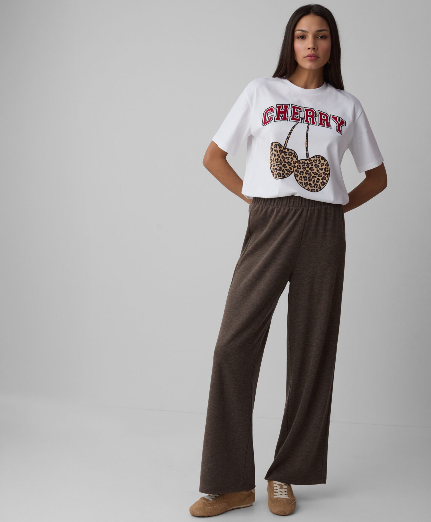 As calças estilo wide leg criam o look perfeito com uma t-shirt da coleção. São macias e agradáveis ao toque. O corte largo proporciona conforto e torna-as ideais tanto para sair com amigos como para relaxar em casa.