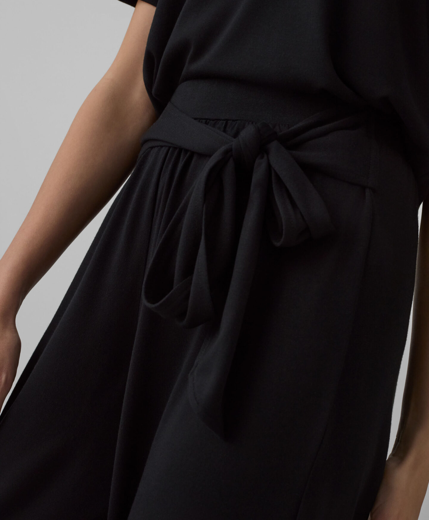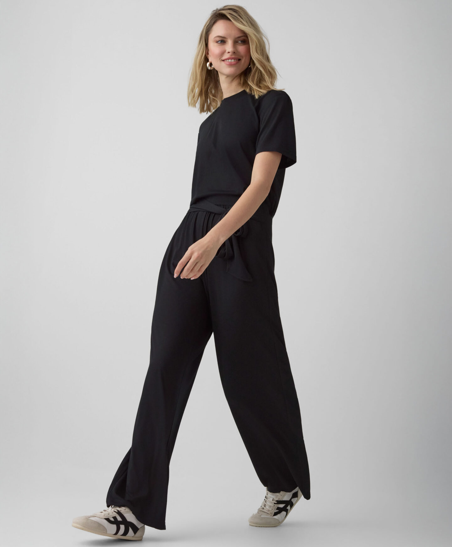 As calças pretas com cordão são ideais para os fãs de conforto e relaxamento. O tecido em viscose confere um brilho elegante e torna-as super macias. O prático cordão permite que as ajustes na perfeição à tua silhueta. O preto é uma cor universal que vai cair bem com todas as peças do teu armário e são perfeitas tanto para o trabalho como para usares no dia-a-dia.