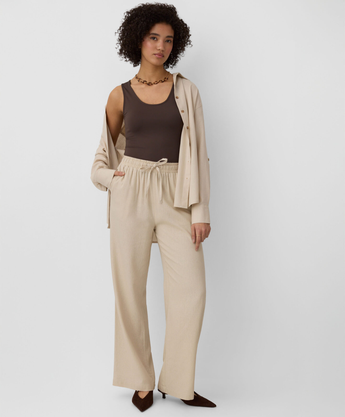As calças loose fit, com elevado teor de viscose, são um essencial de conforto. São leves, frescas e suaves ao toque. A cor subtil permite combiná-las facilmente com t-shirts, blusas ou tops.