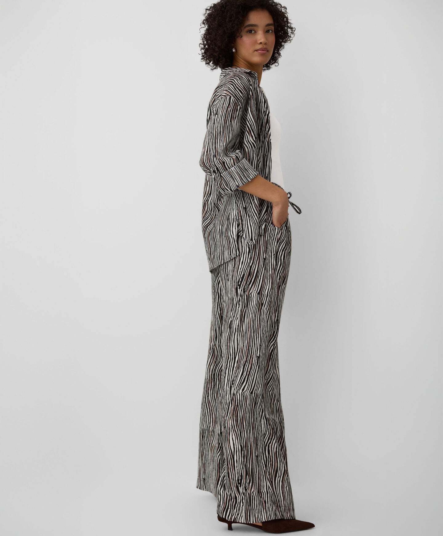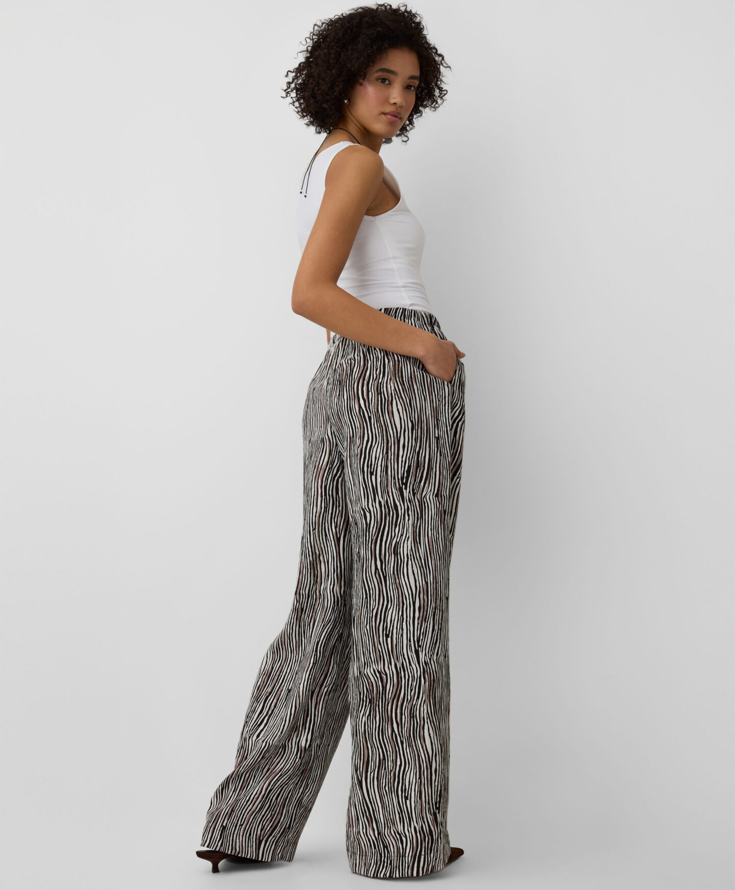 As calças loose fit com padrão são um sucesso para esta estação. São leves, frescas e destacam-se no guarda-roupa. Combinam com blusas, camisas ou tops lisos, adicionando personalidade a qualquer look.
