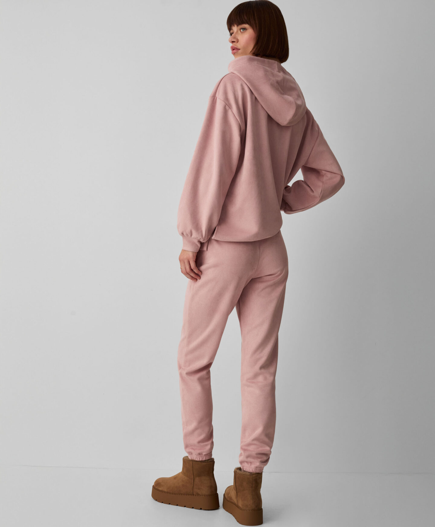 As calças de fato de treino com bolsos são uma opção elegante e confortável para o dia a dia. Macias e agradáveis ao toque, perfeitas para passeios de outono. Cria um look confortável com a camisola com capuz da mesma coleção. Disponível em vários modelos.