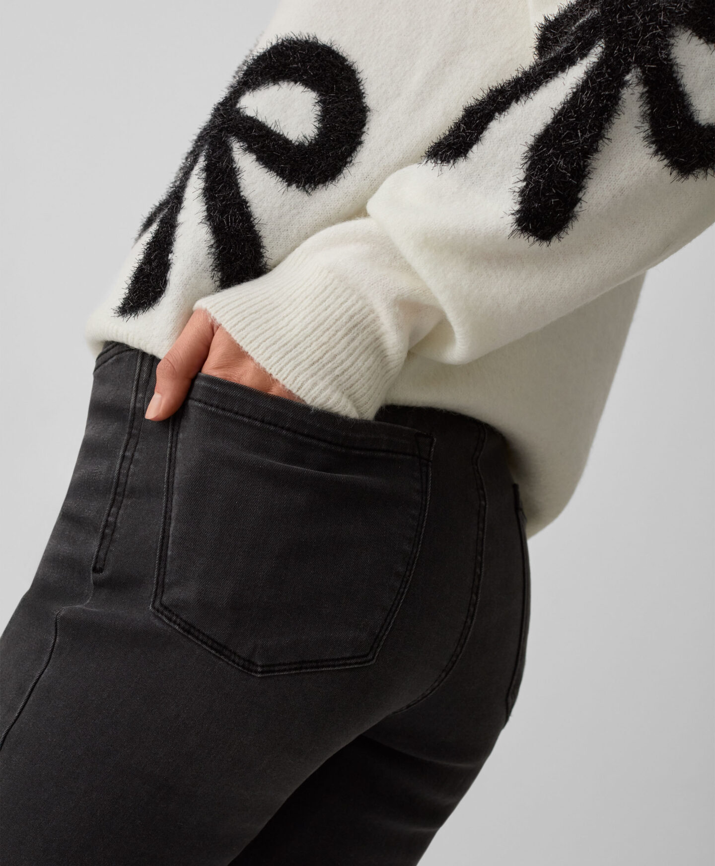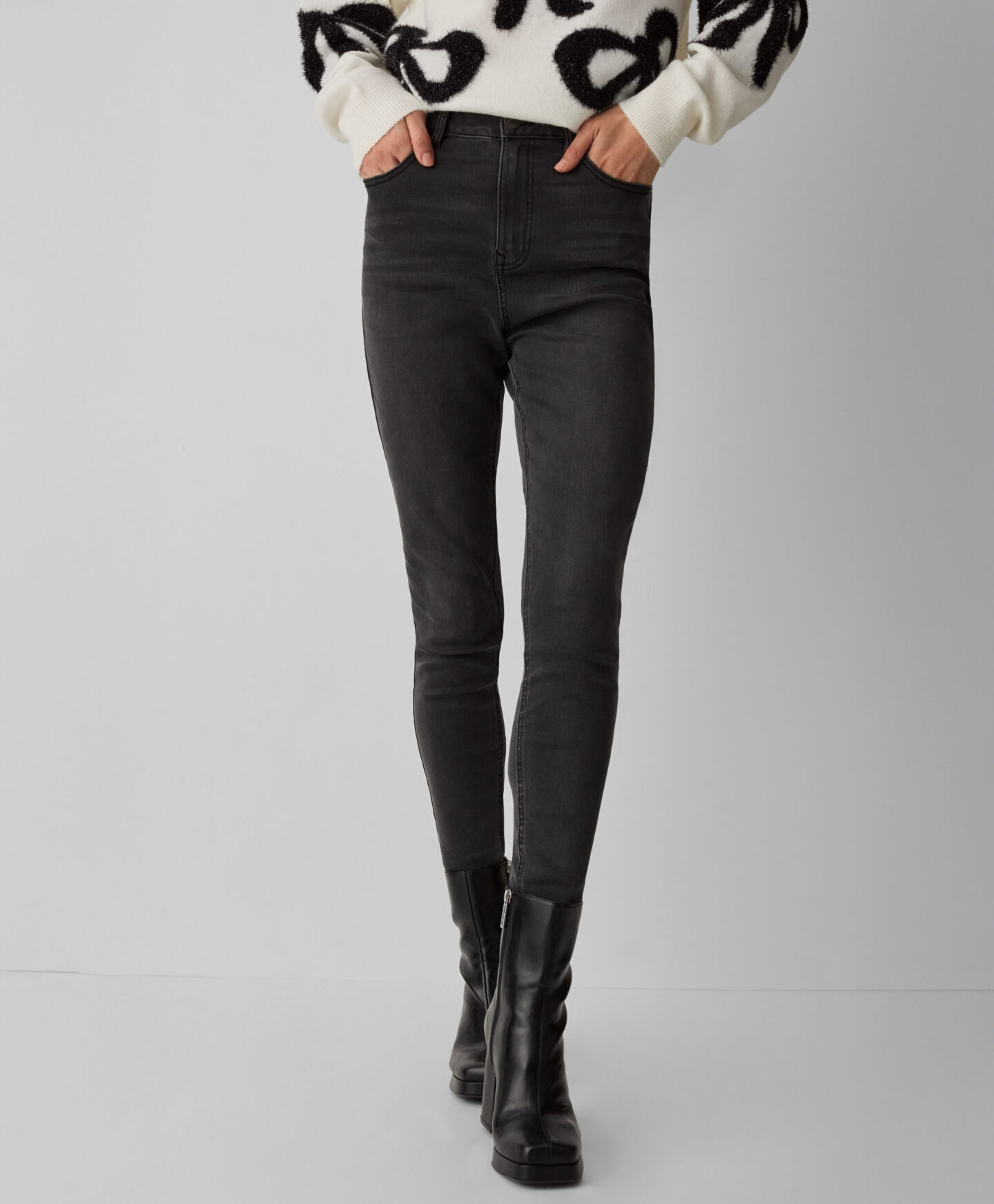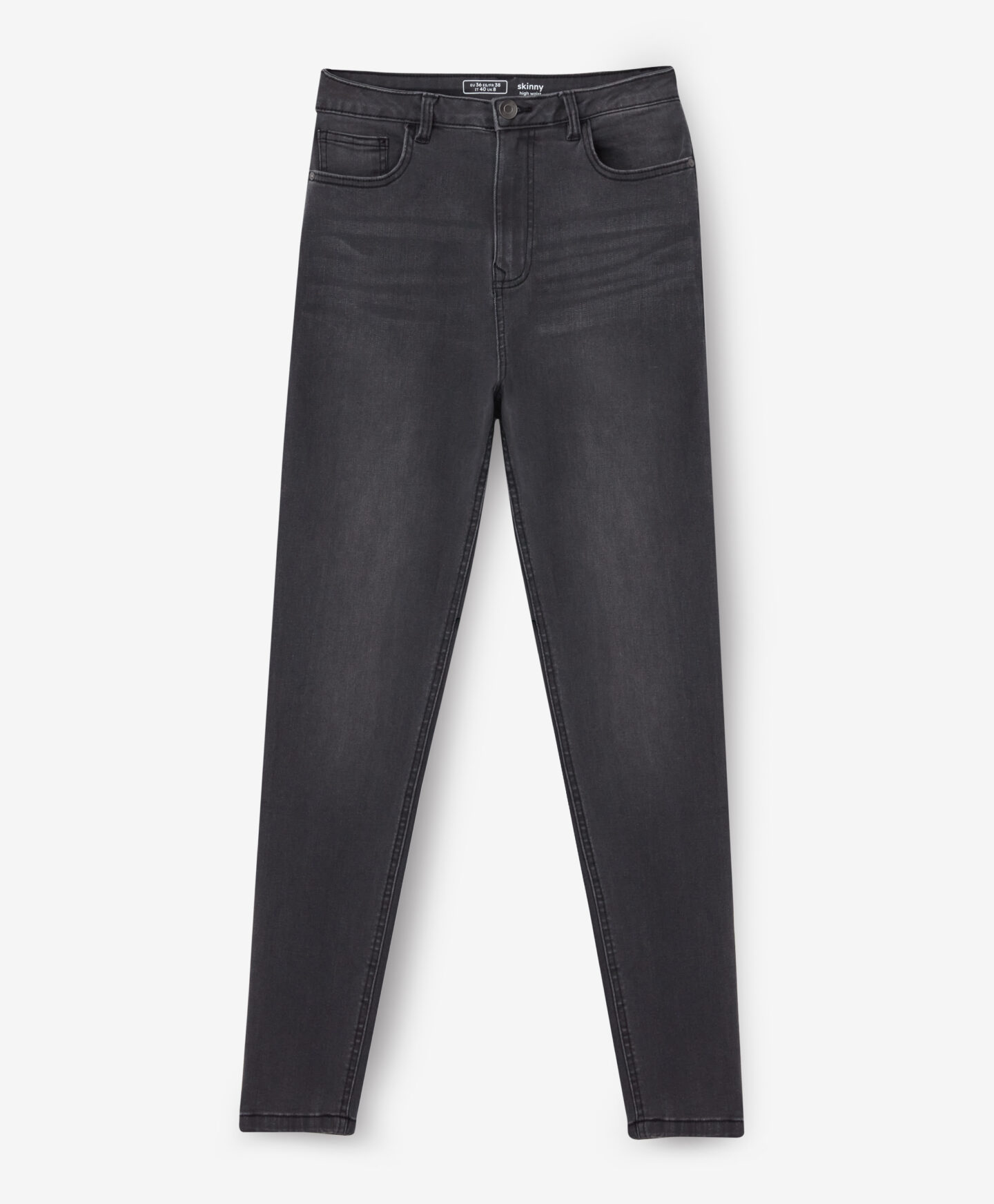 As calças de ganga estilo skinny, em algodão, são um clássico. O elastano garante que se ajustam perfeitamente à silhueta, enquanto a cor cinzenta torna-as muito versáteis. São fáceis de combinar, ótimas para o dia a dia!