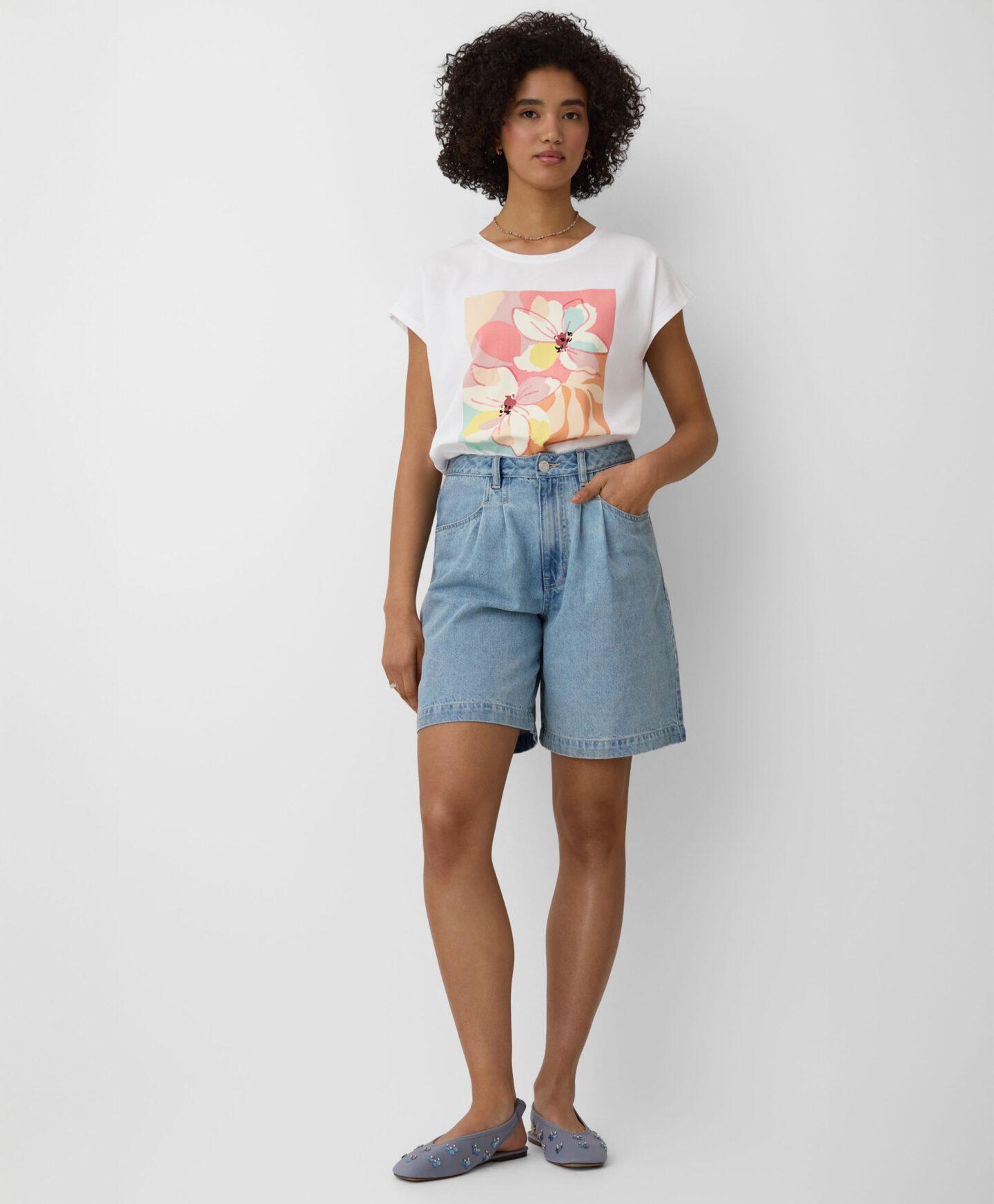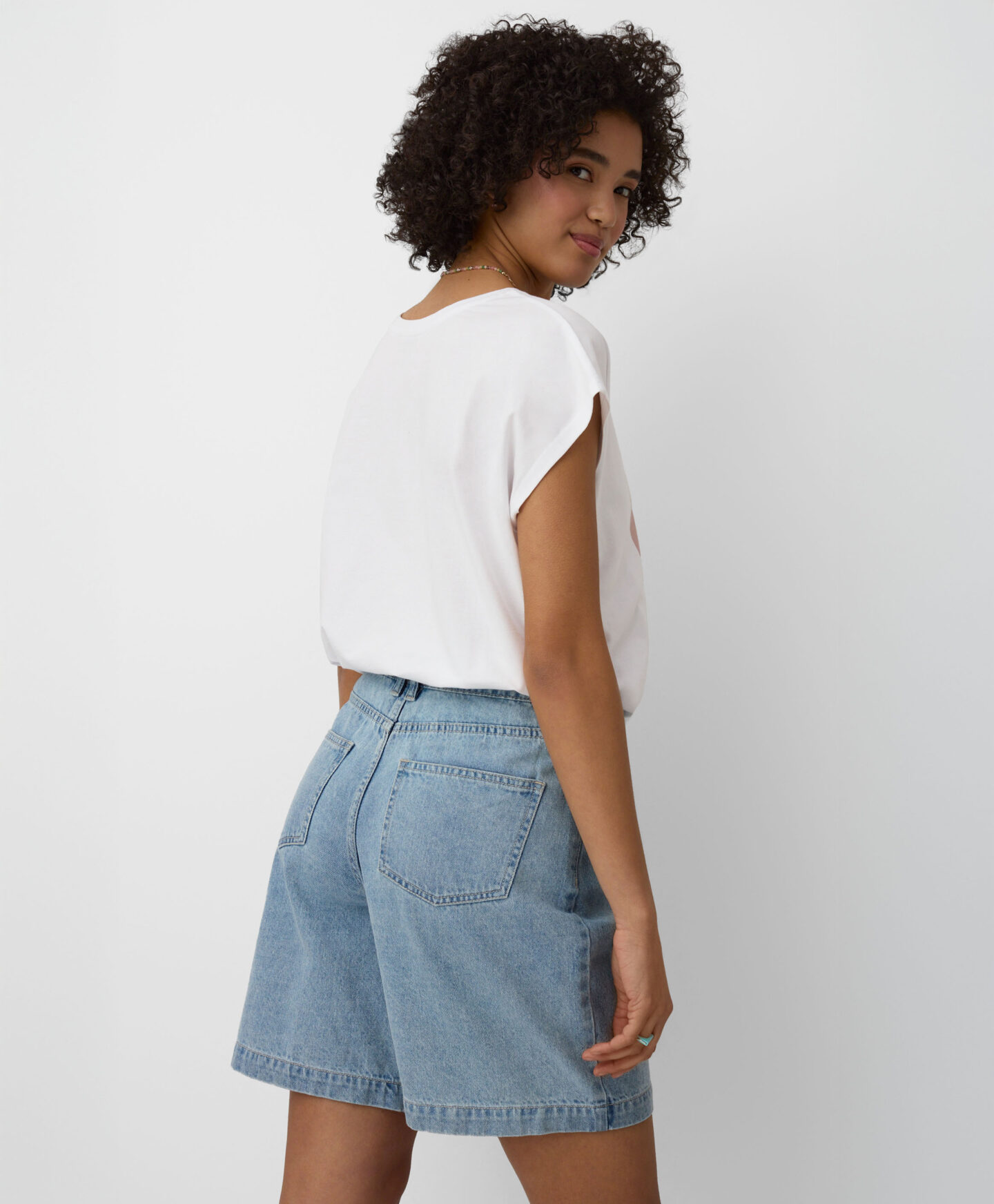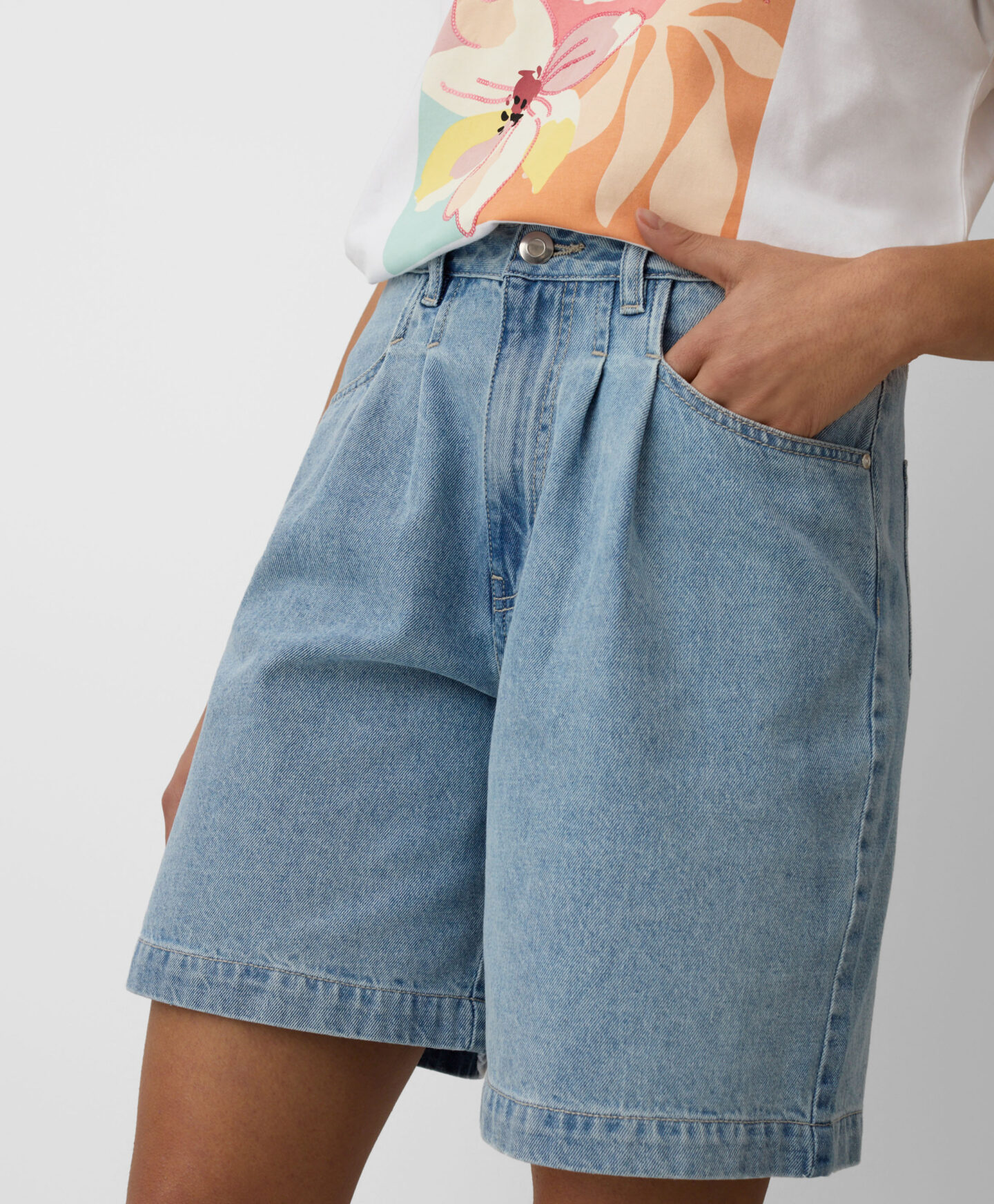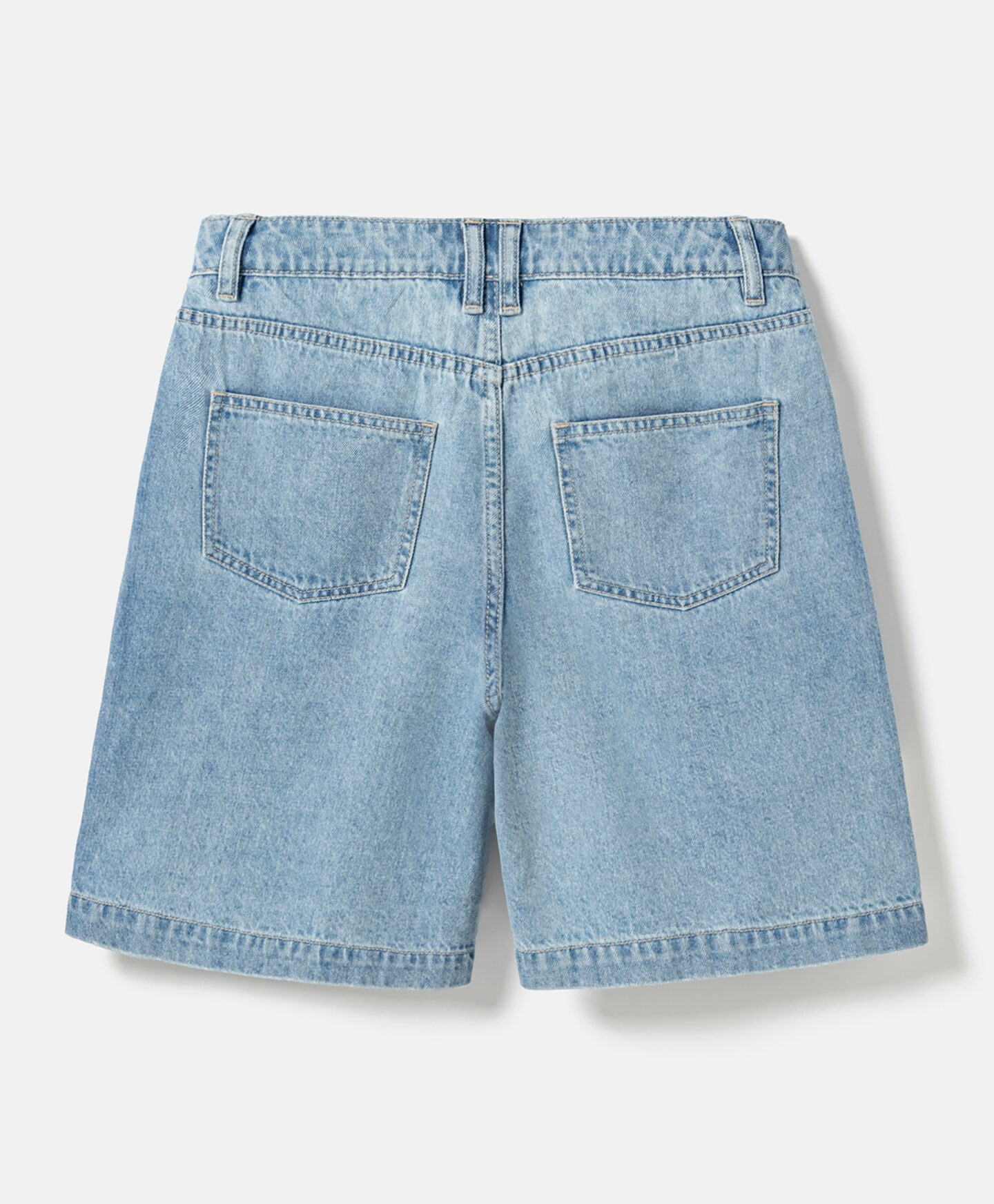 Os calções Bermuda em 100% algodão são ideais para quem procura conforto e estilo clássico nos dias quentes. O corte largo permite total liberdade de movimentos e o comprimento da perna favorece qualquer silhueta. A ganga intemporal é perfeita para fazer combinações sem limite.
