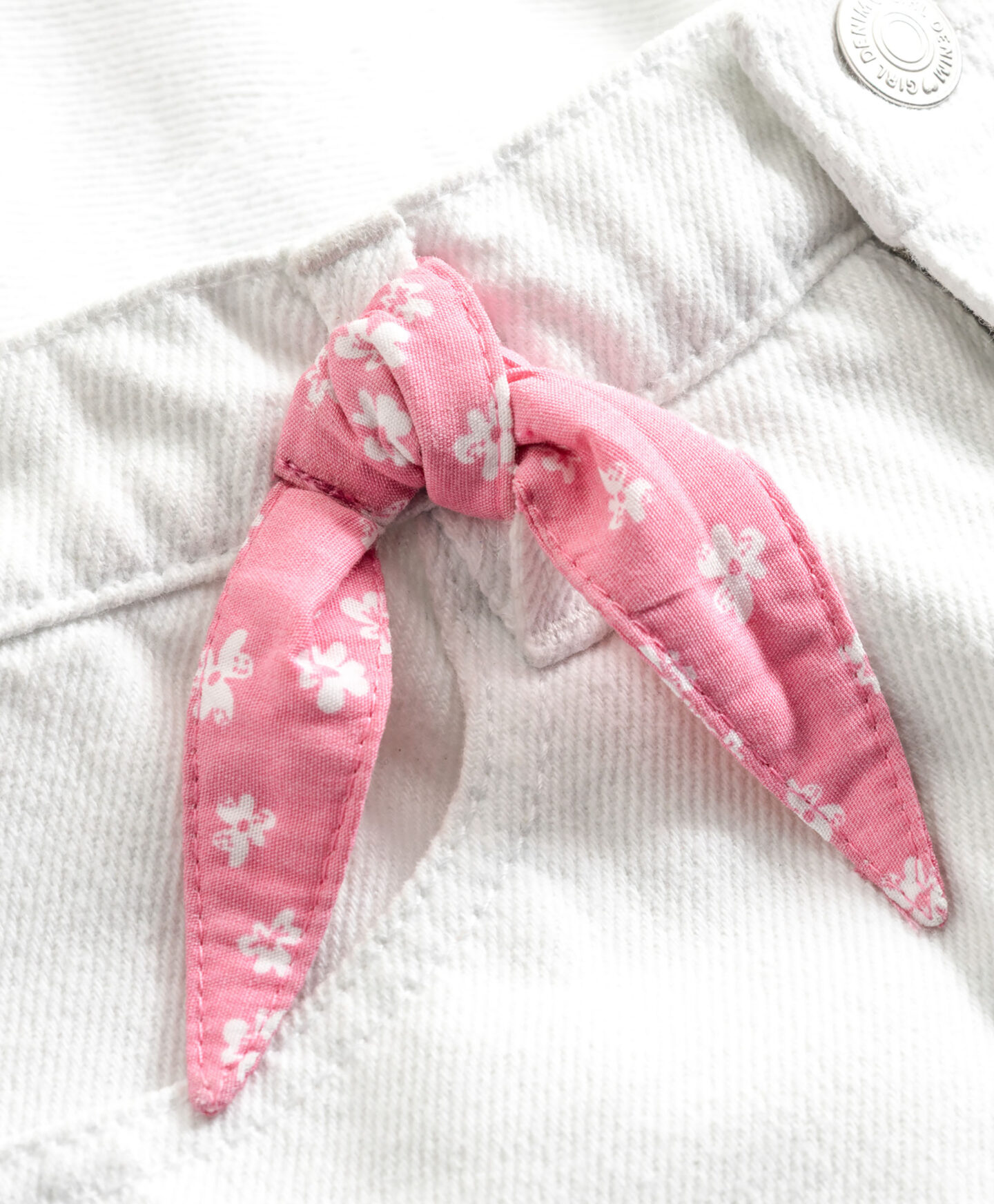 Os calções de ganga em 100% algodão são o melhor look da estação! A ganga clássica torna-os muito versáteis para combinar com outras cores e padrões. Os calções têm um corte universal que garante conforto durante as aventuras de verão e, um botão que permite uma adaptabilidade total. Incluem um lenço rosa que dá destaque e pode ser usado em laço. Combina-os com as tuas t-shirts preferidas.