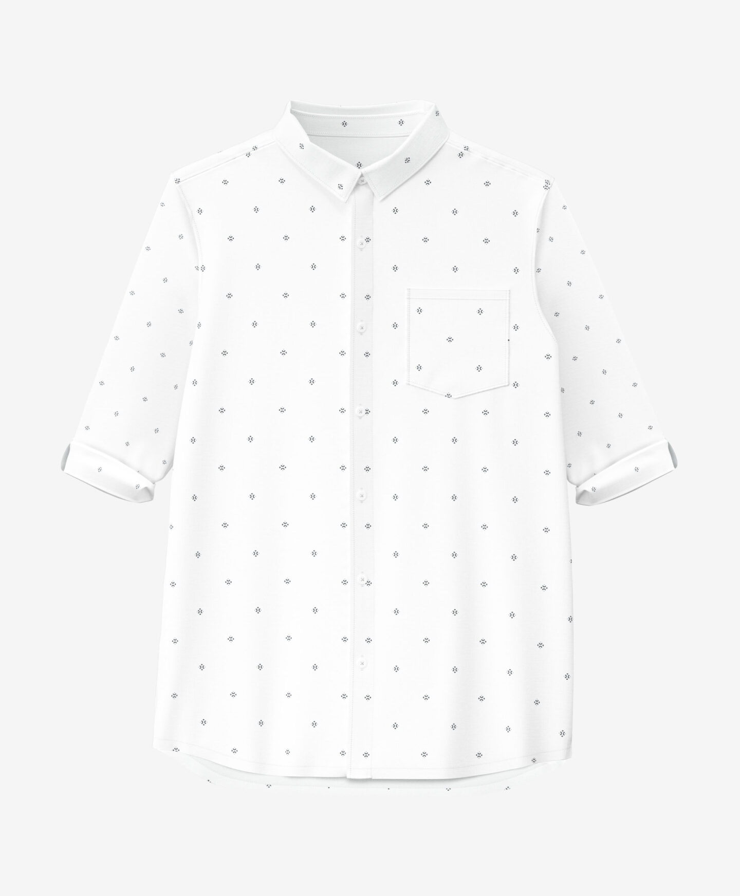 A camisa com padrão, em 100% algodão, é ideal para ocasiões especiais. O colarinho e o design geométrico acrescentam estilo. Combina com uma camisola ou cardigan, e é perfeita para eventos em família ou de escola. O material respirável garante conforto.