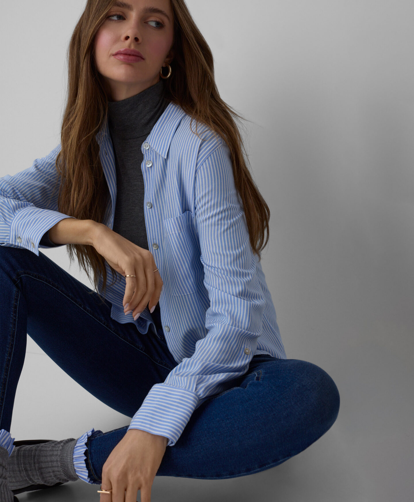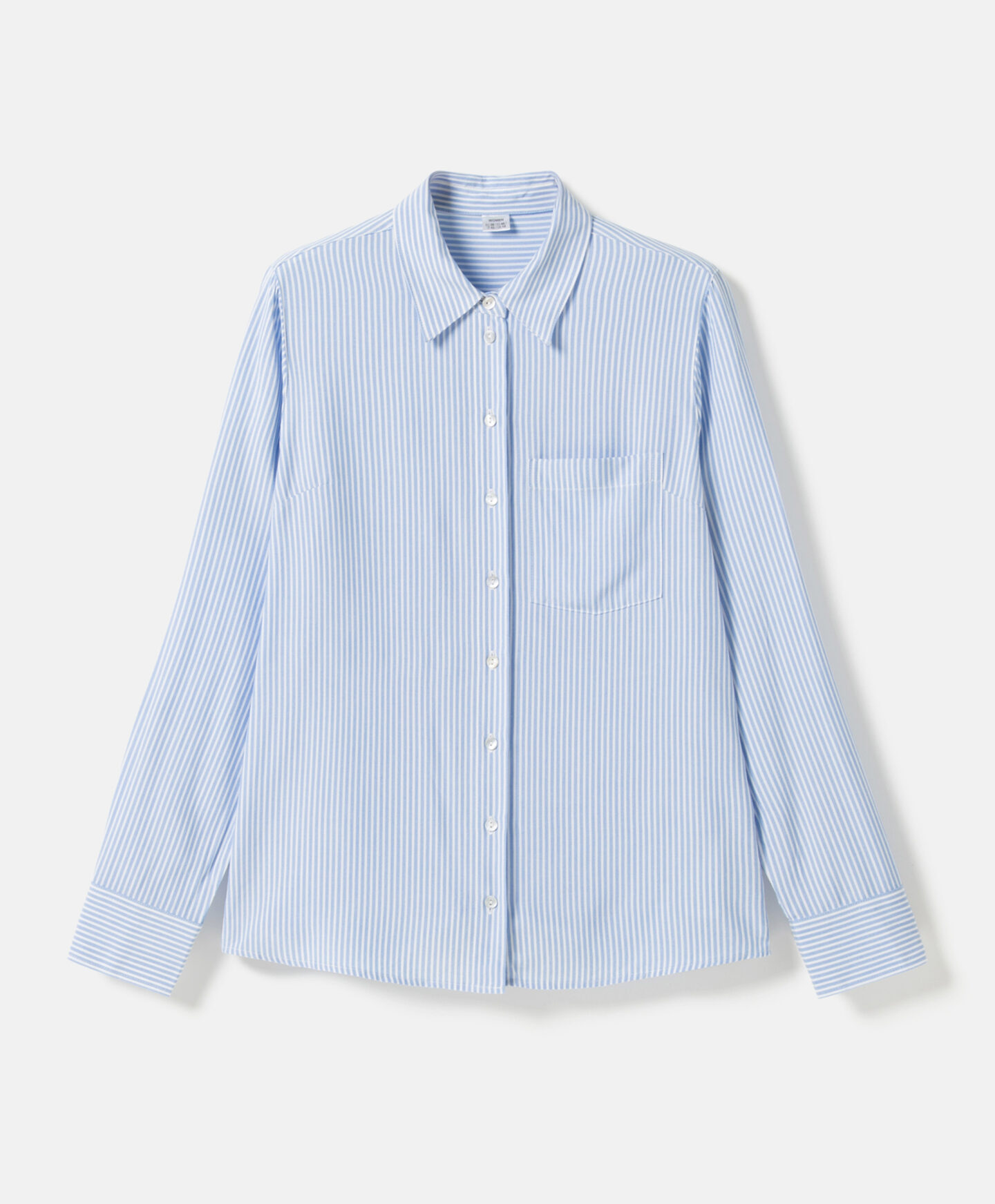 A camisa às riscas, em 100% viscose, é perfeita para complementar o teu guarda-roupa. O padrão intemporal combina com calças elegantes ou peças mais descontraídas. A viscose macia, garante leveza e respirabilidade, oferecendo conforto e adaptando-se perfeitamente à silhueta.