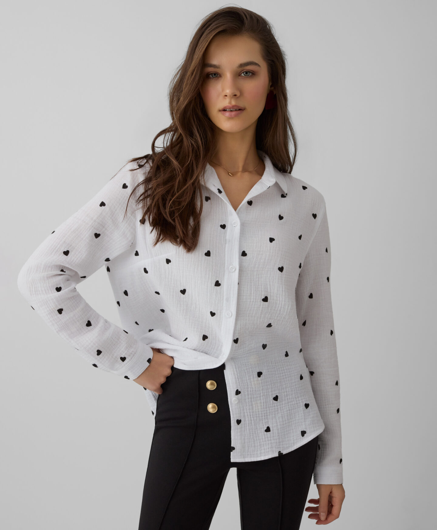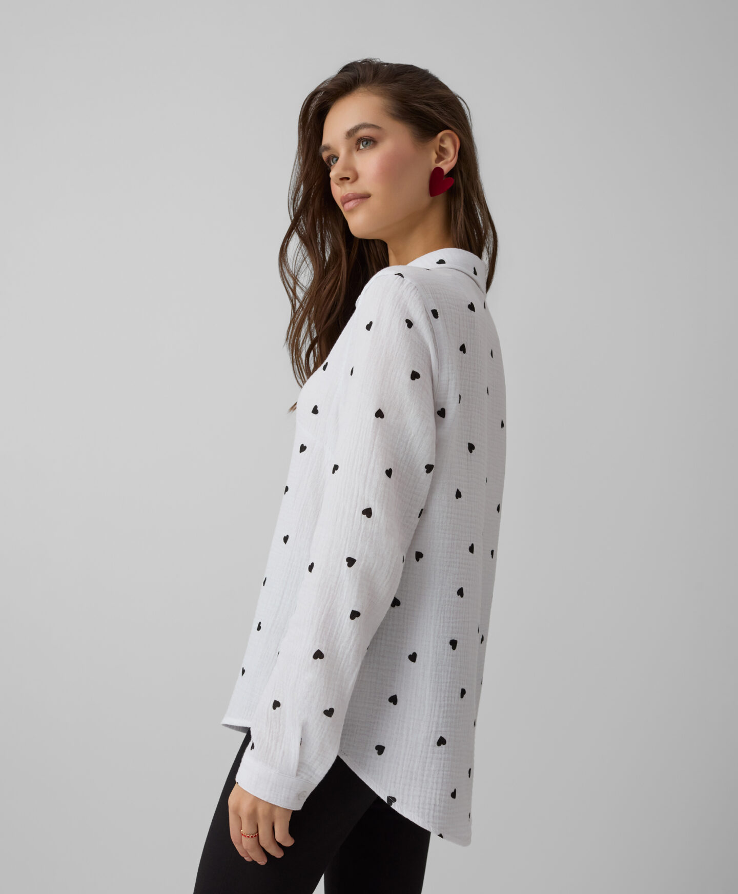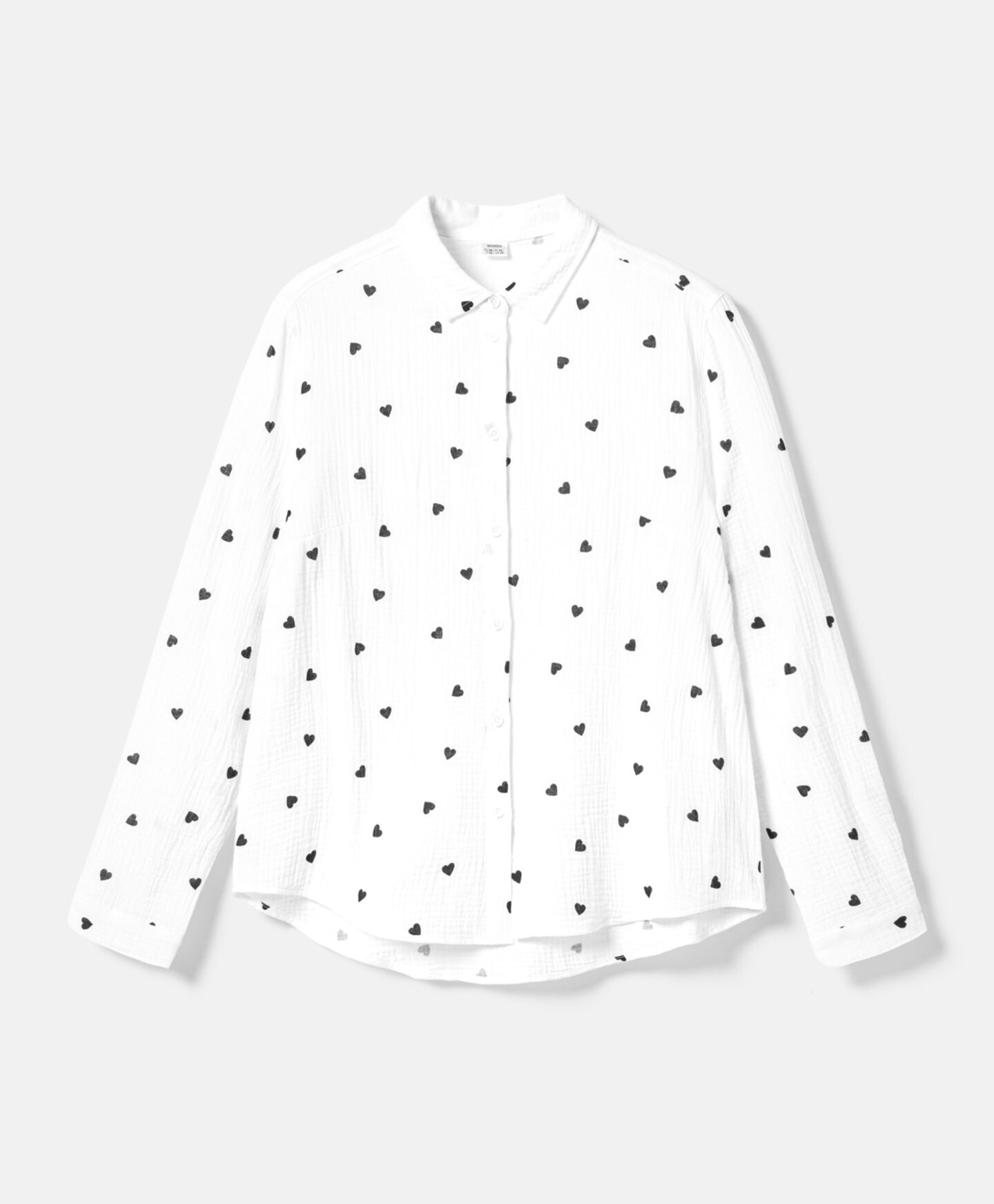 A camisa com padrão delicado, em 100% algodão, é ideal para quem aprecia um estilo clássico. O tecido de musselina é leve, respirável e extremamente macio, tornando-a adequada para várias ocasiões. O design minimalista adapta-se tanto a looks casuais como mais elegantes.