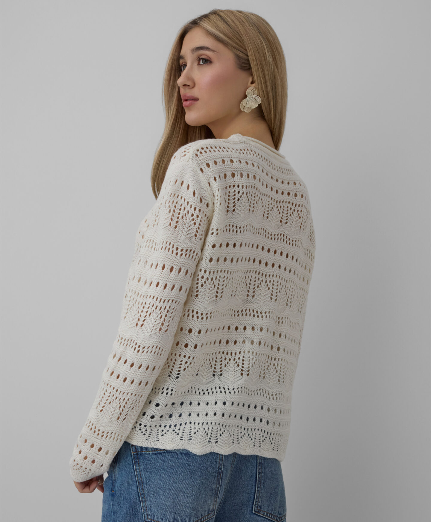 A camisola rendada marca a diferença para quem adora um estilo romântico. O corte mais solto e o tecido leve acrescentam um carácter único. O padrão acrescenta leveza ao look. Pode ser combinada com calças de ganga ou elegantes.