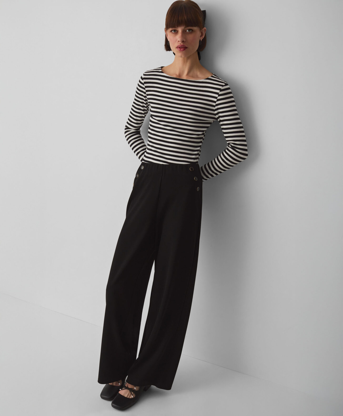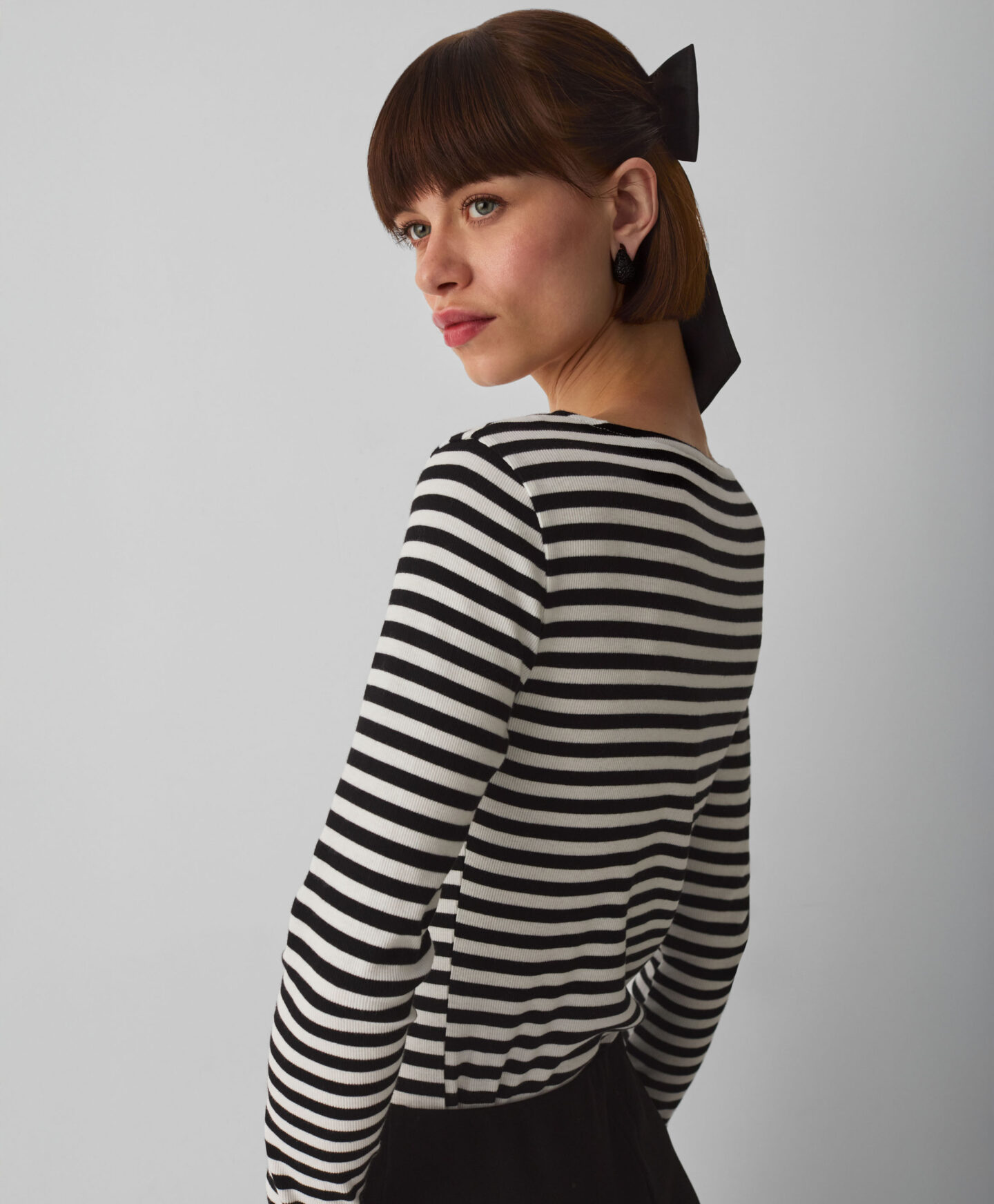 A camisola às riscas é um essencial no teu guarda-roupa de outono. É leve, macia e respirável. Uma ótima escolha tanto para o trabalho como para os dias livres e mais descontraídos. Encontra mais modelos às riscas nesta coleção!