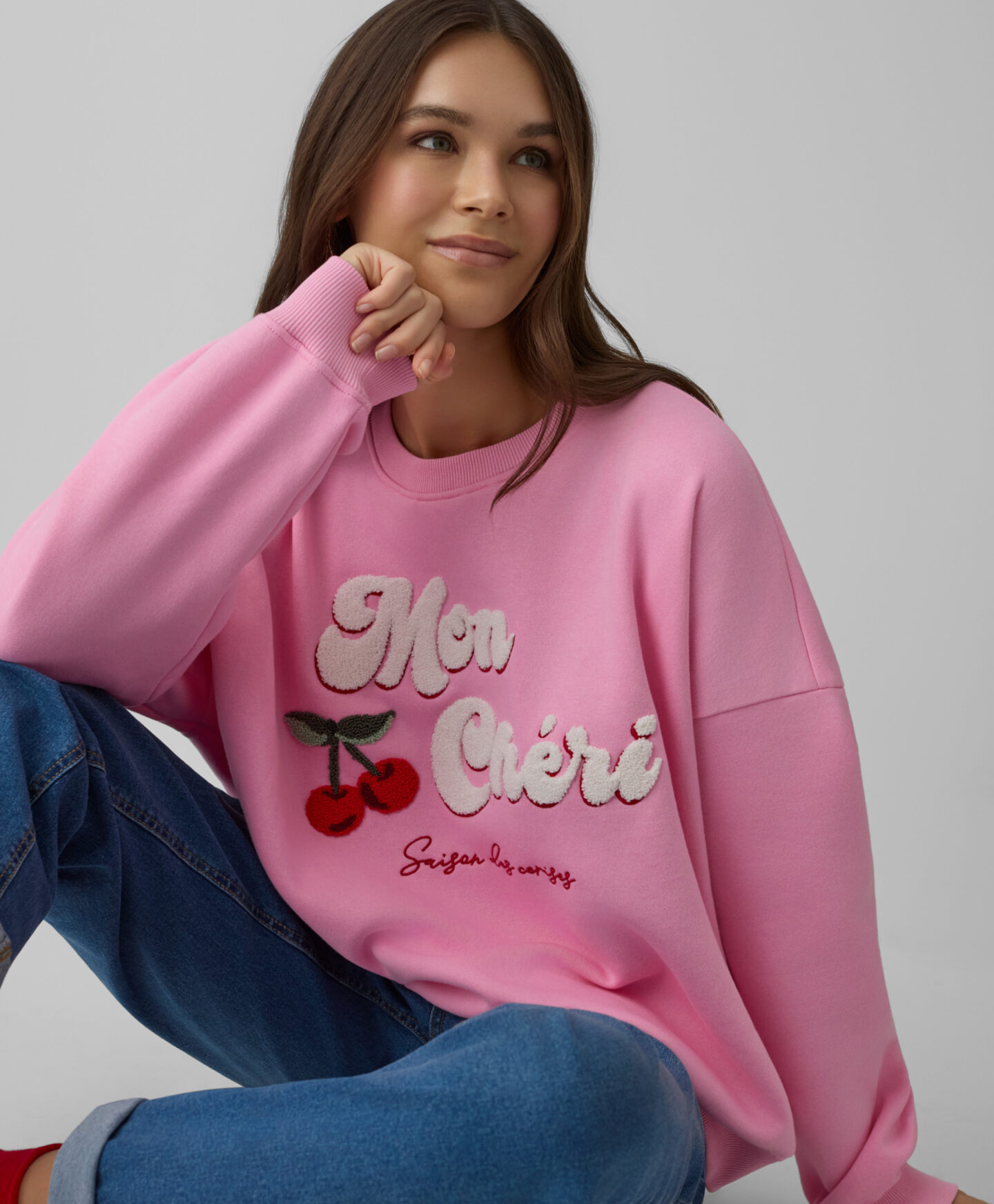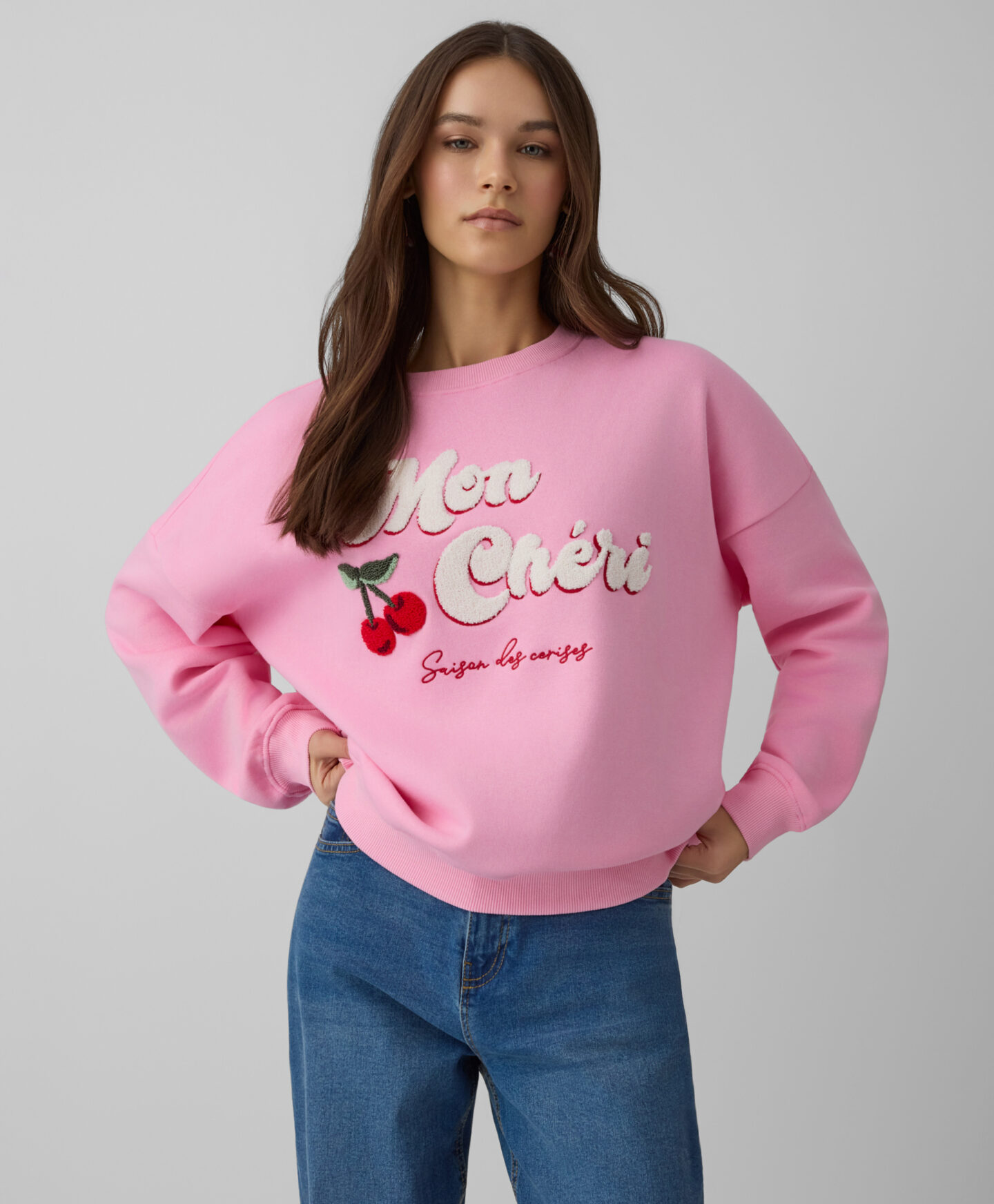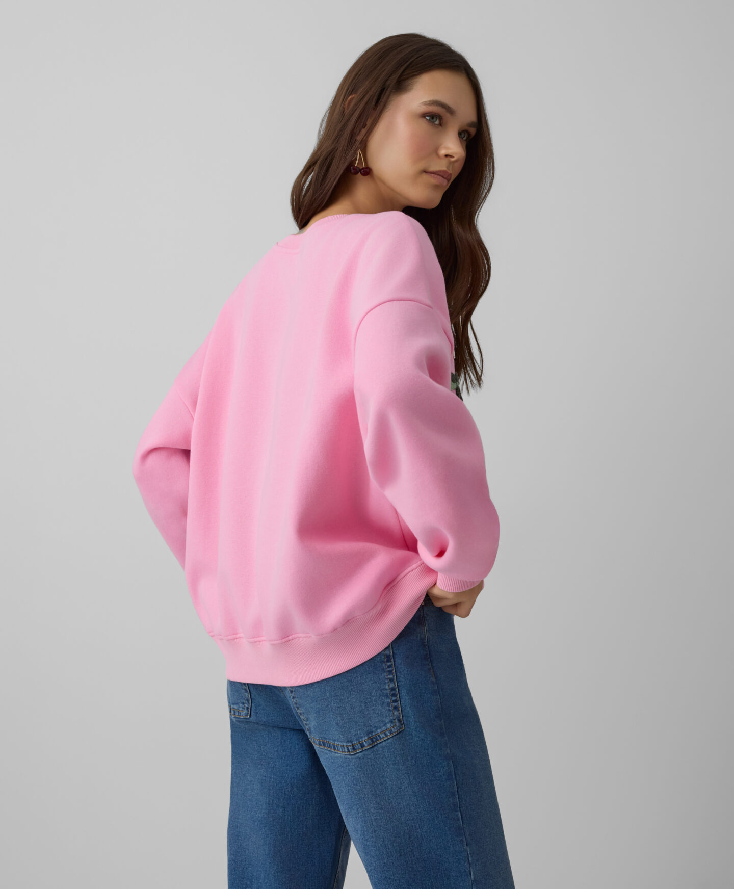 A camisola com estampado de cereja, em algodão macio, é um toque encantador em qualquer armário. Envolve a pele de forma suave, é quente, durável e resistente às lavagens. Combina na perfeição com calças de ganga ou de fato de treino.