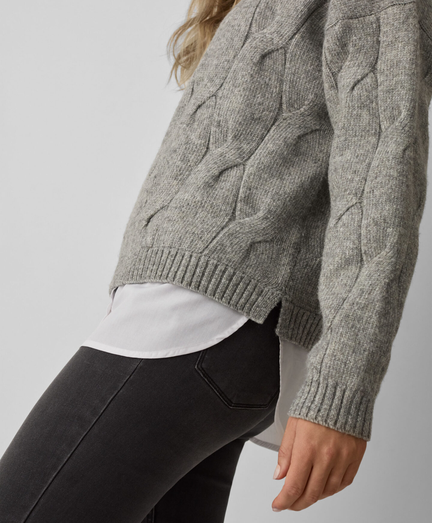 A camisola com camisa é perfeita para quem adora as tendências. A malha trançada é muito trendy para o outono, e a combinação com uma camisa branca torna-a numa ótima escolha para várias ocasiões. Podes usá-la no trabalho, num encontro com amigos ou num passeio ao ar livre. Disponível em duas cores.