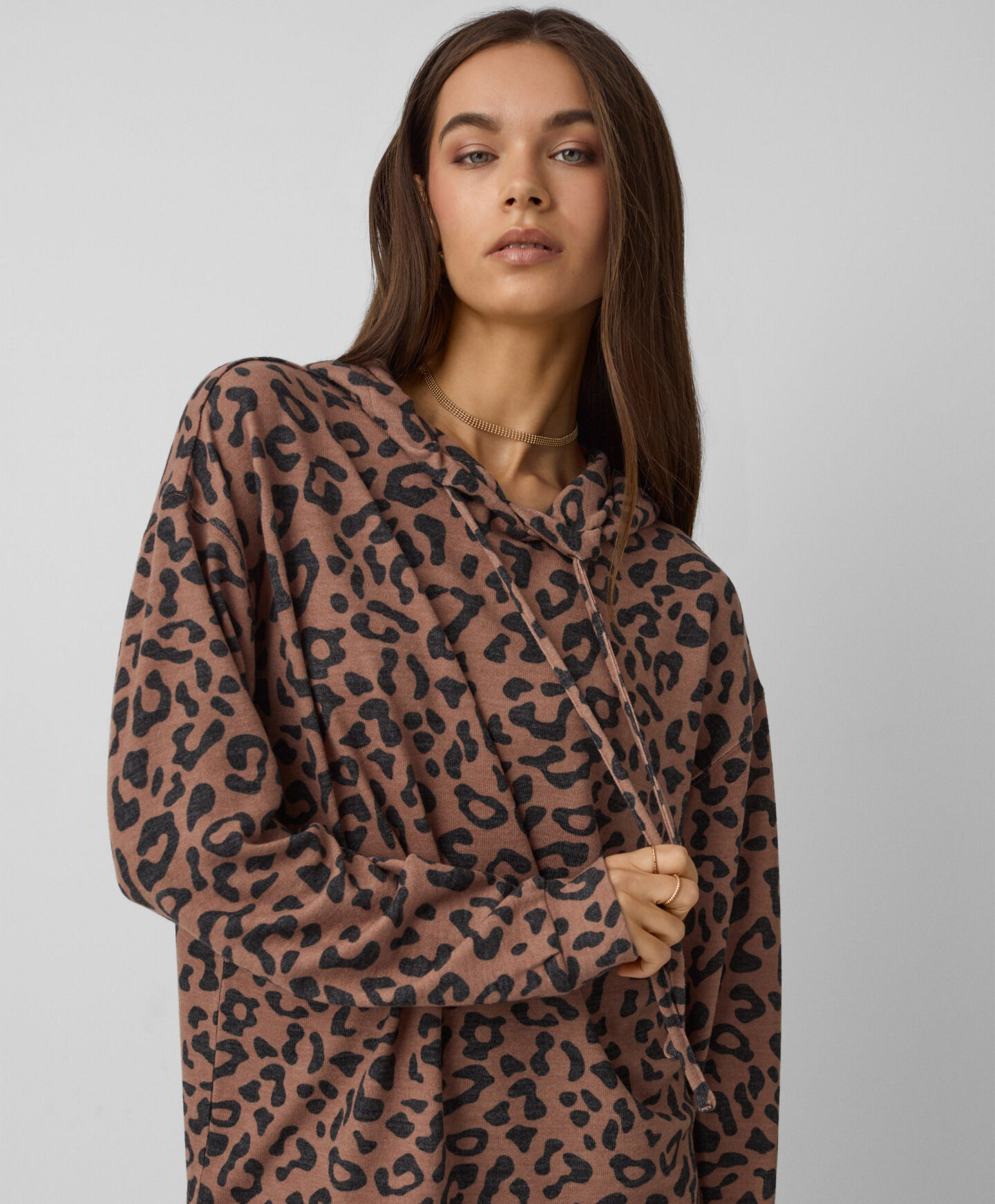 A camisola com capuz e padrão é ideal para o outono. Oferece conforto e calor. Ótima para dias descontraídos – fazer exercício, ir às compras, passear ao ar livre ou relaxar em casa.