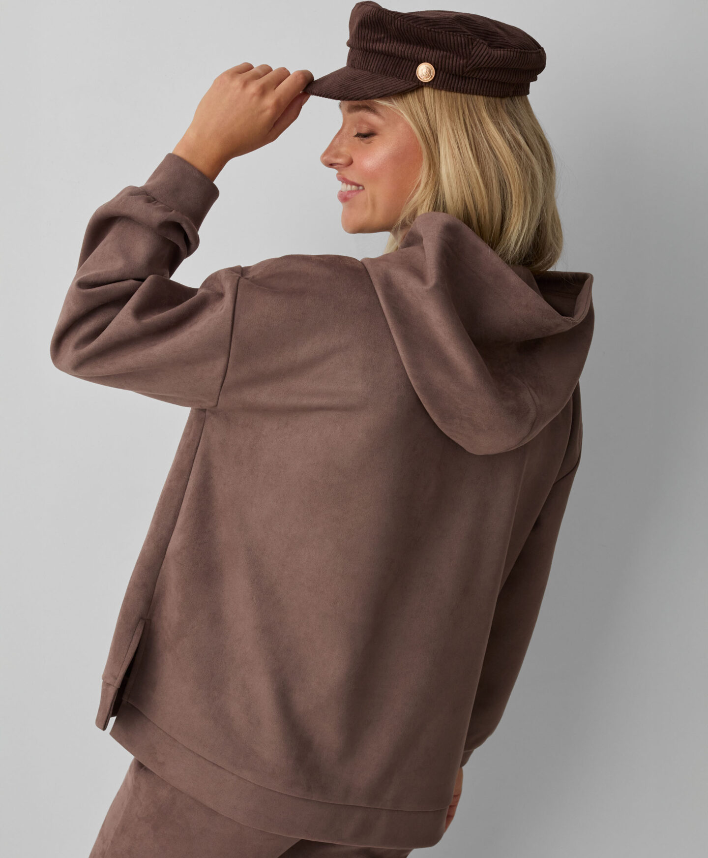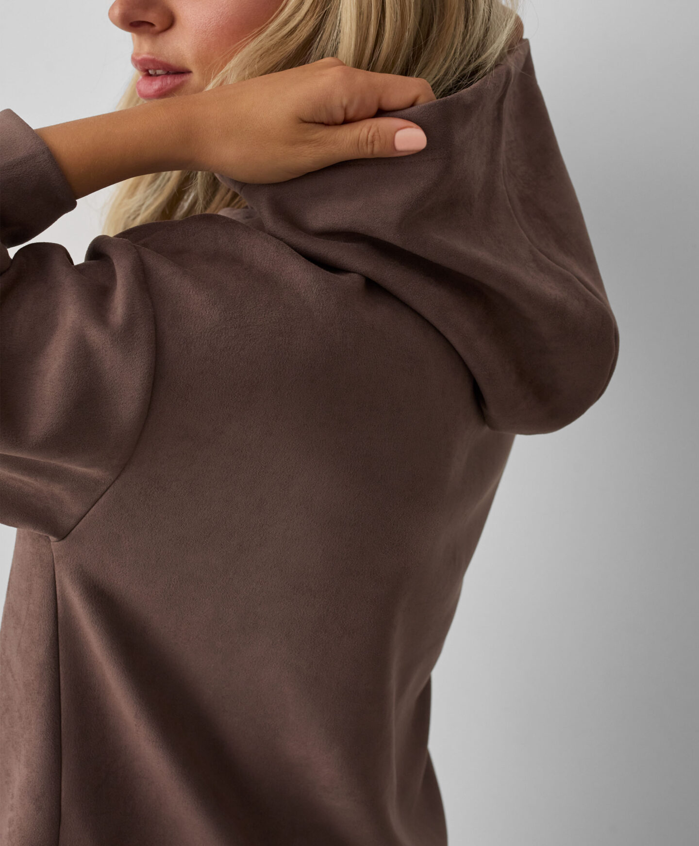 A camisola com capuz oferece conforto e calor nos dias frios. Além de confortável, é também elegante. O material macio, o design cuidado e a paleta de cores farão dela a tua preferida para o outono! Combina na perfeição com umas calças de fato de treino da coleção. Disponível em duas cores.