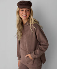 A camisola com capuz oferece conforto e calor nos dias frios. Além de confortável, é também elegante. O material macio, o design cuidado e a paleta de cores farão dela a tua preferida para o outono! Combina na perfeição com umas calças de fato de treino da coleção. Disponível em duas cores.
