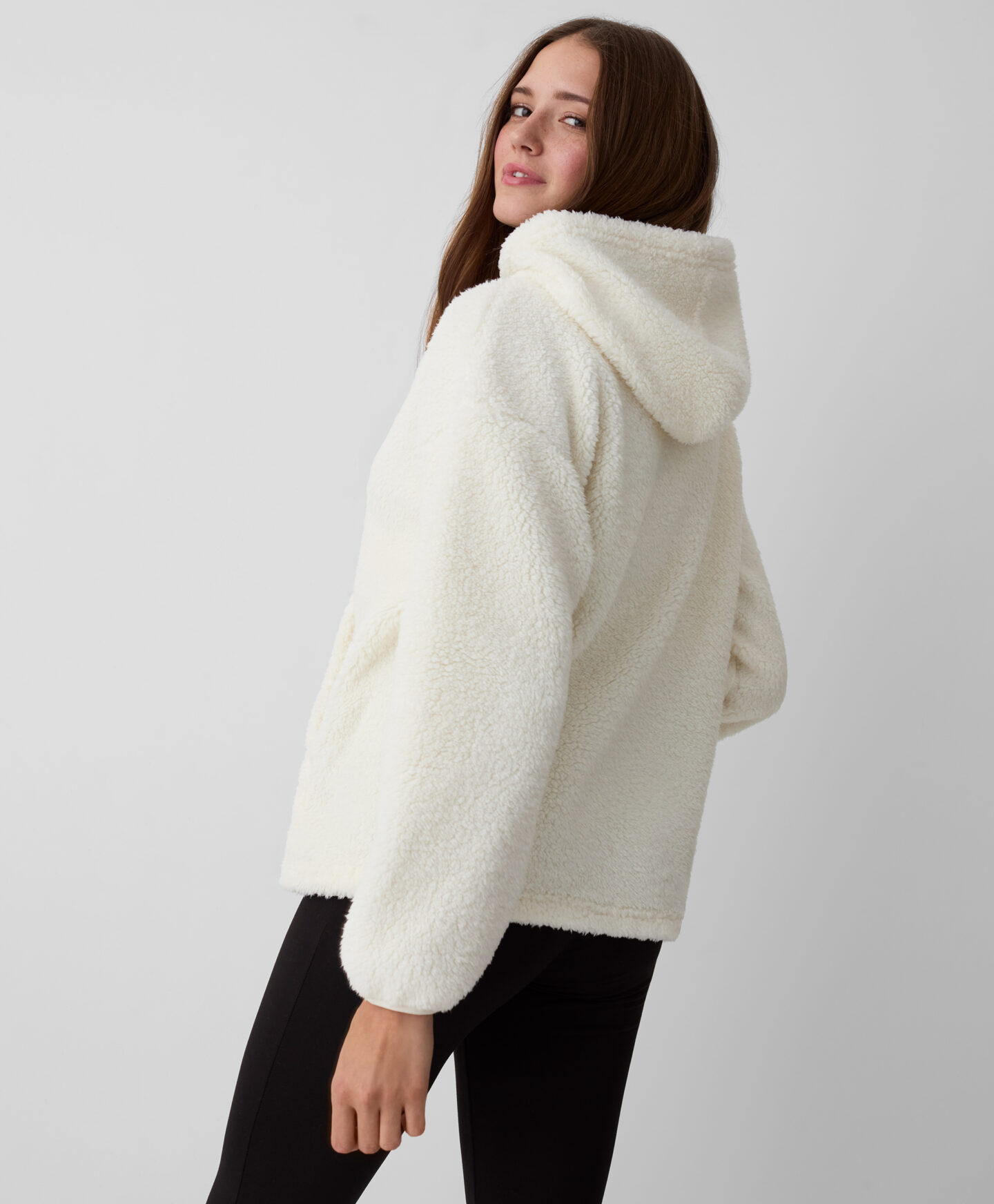 A camisola com capuz sherpa é indispensável no guarda-roupa de outono-inverno. O material agradável ao toque proporciona calor e conforto no dia a dia. O capuz protege contra o vento e o frio, e o bolso canguru aquece as mãos. Perfeita para as próximas estações!
