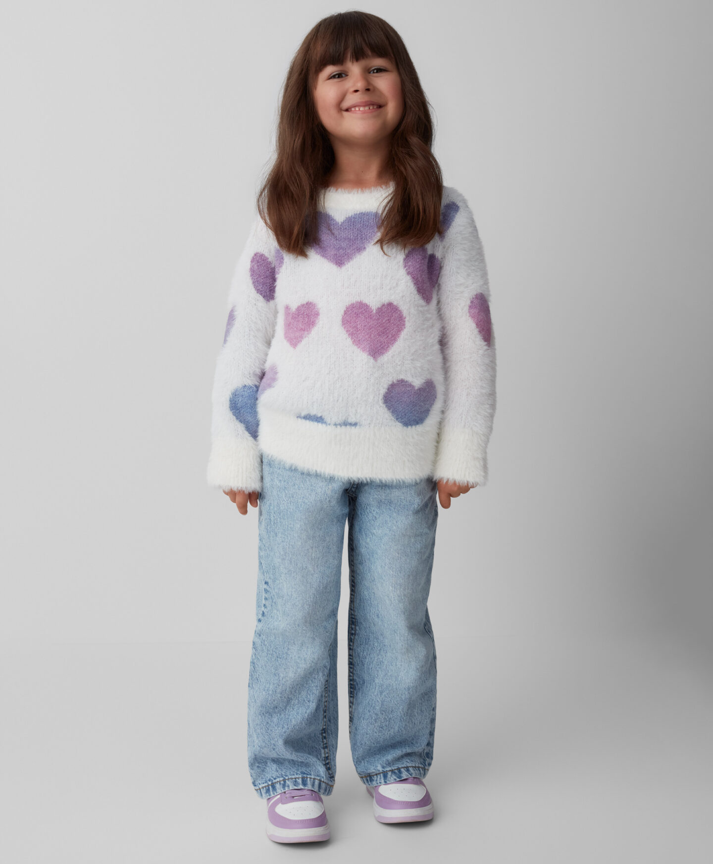 A camisola com padrão de corações é perfeita para as crianças que adoram conforto com um toque único. O design encantador torna-a macia e agradável ao toque. Ideal para o frio de outono e inverno – a escolha perfeita para a escola ou as brincadeiras de fim de semana. Combina na perfeição com calças de ganga ou leggings.