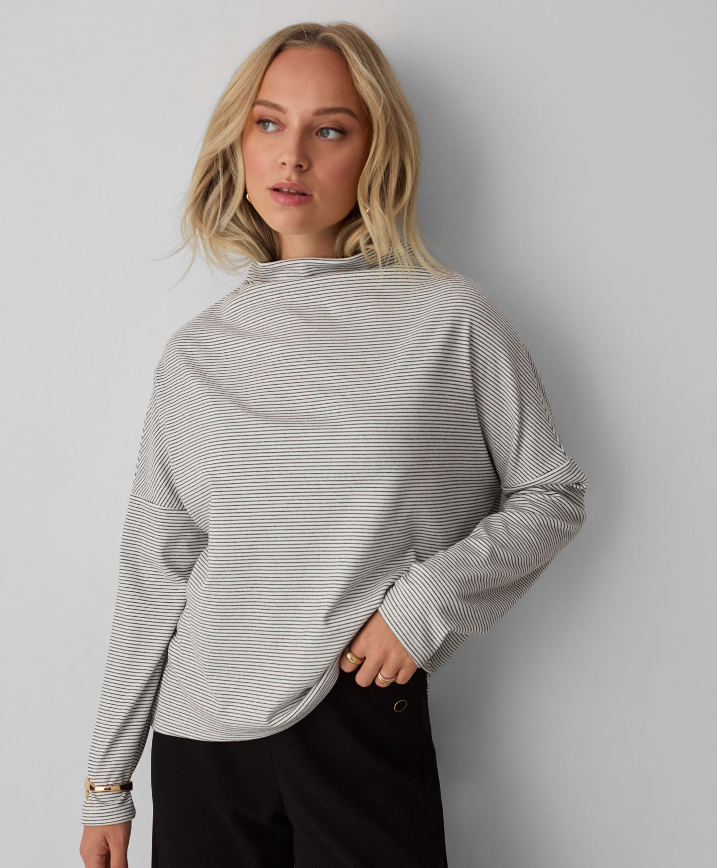 A camisola de gola alta é um essencial no teu guarda-roupa de outono. É leve, macia e respirável. Uma ótima escolha tanto para o trabalho como para os compromissos dos dia a dia. A gola alta garante que tens um look acolhedor, perfeito para as próximas estações.