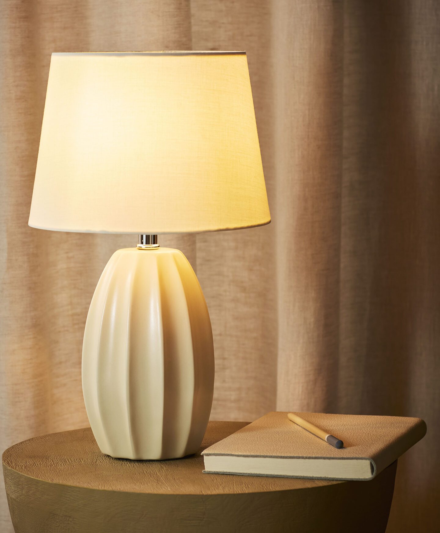 O candeeiro de mesa em cerâmica é um aliado perfeito para te acompanhar nos dias mais cinzentos. A luz quente é ideal para qualquer ocasião. O design versátil e as cores suaves tornam-no adequado para a sala de estar, o escritório ou o hall de entrada.