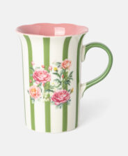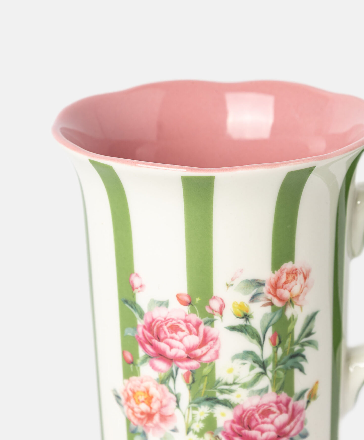 A caneca às riscas acrescenta cor e descontração a cada momento. O padrão floral convida a primavera a entrar em casa e torna cada bebida ainda mais especial. Ideal para café, chá ou chocolate quente. Perfeita para oferecer como presente. Disponível em dois modelos.