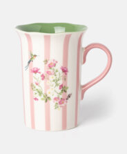 A caneca às riscas acrescenta cor e descontração a cada momento. O padrão floral convida a primavera a entrar em casa e torna cada bebida ainda mais especial. Ideal para café, chá ou chocolate quente. Perfeita para oferecer como presente. Disponível em dois modelos.