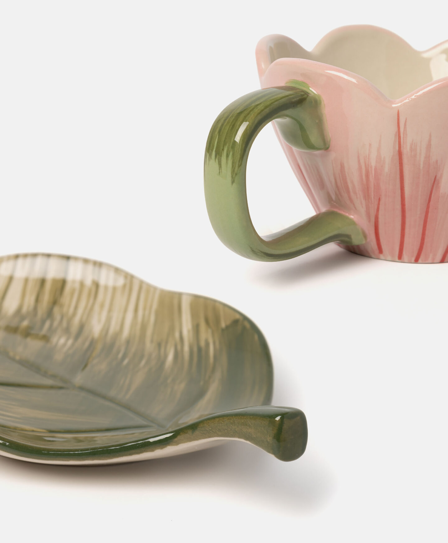 A chávena em forma de flor, com pires em forma de folha, encanta pelo cuidado nos detalhes. O design único torna-a num presente perfeito para amantes de café ou chá. Ideal para o teu dia a dia, acrescentando um toque mágico a cada momento. Leva a primavera para a tua cozinha!