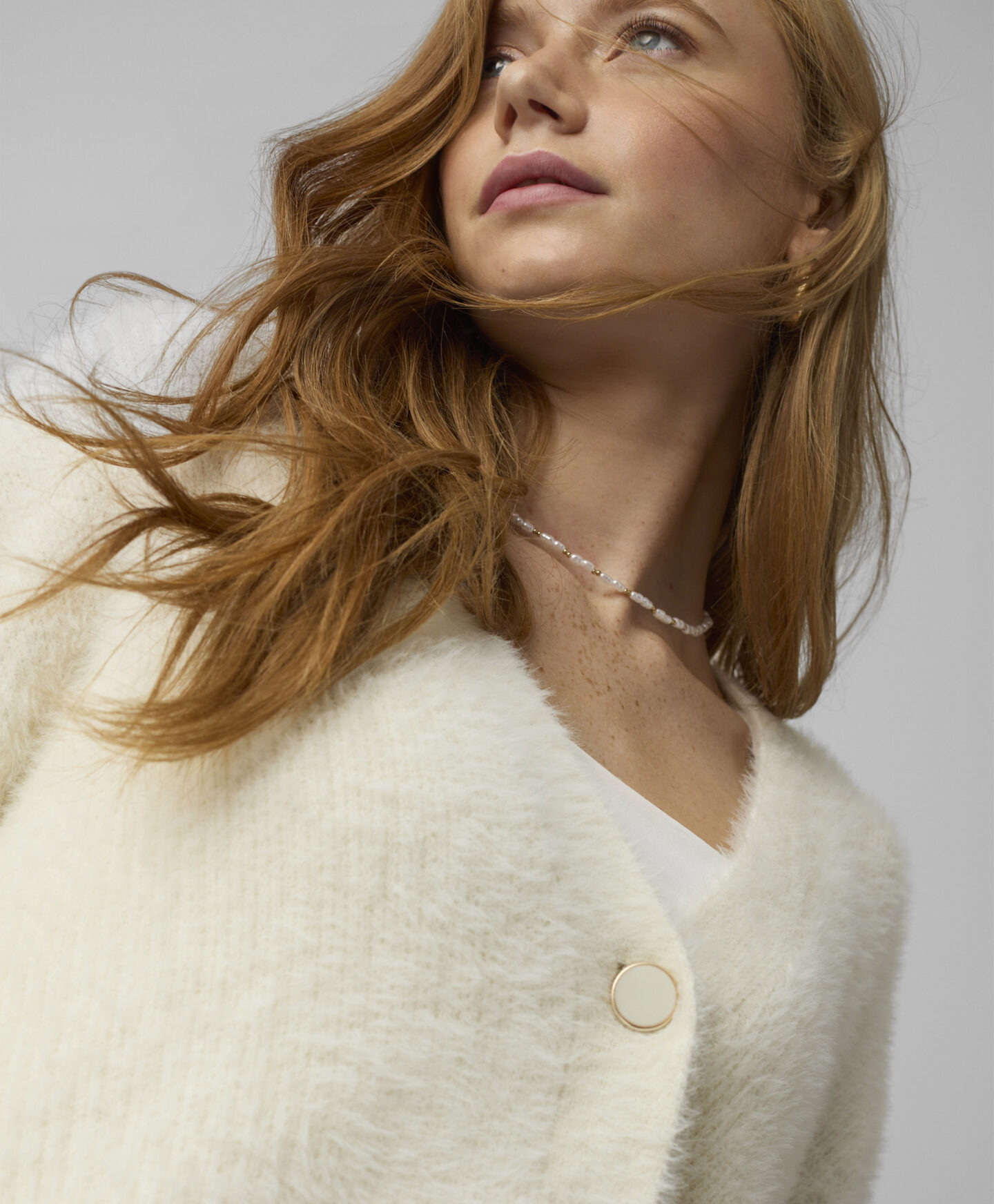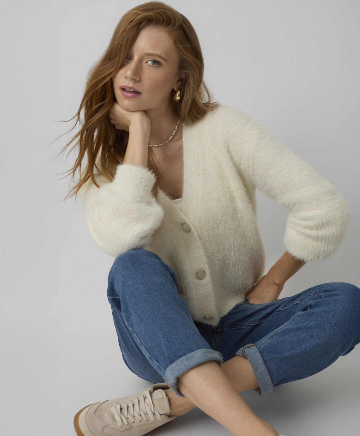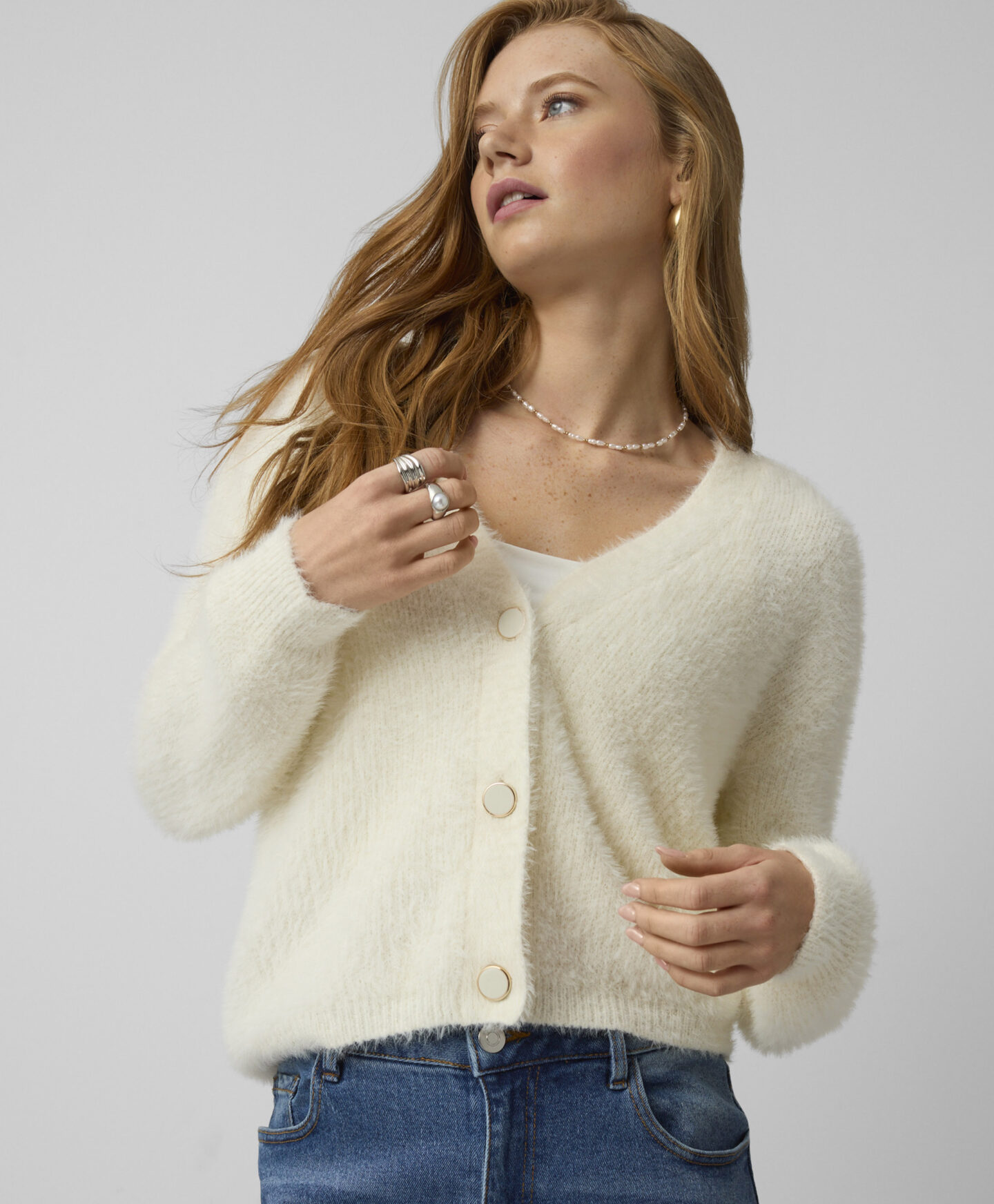 O cardigan é a escolha perfeita para os dias mais frios. Os botões decorativos são um pormenor interessante em qualquer look. Ótimo tanto para o trabalho como para sair à noite. O design clássico torna-o versátil, ideal para criar várias combinações cheias de estilo.