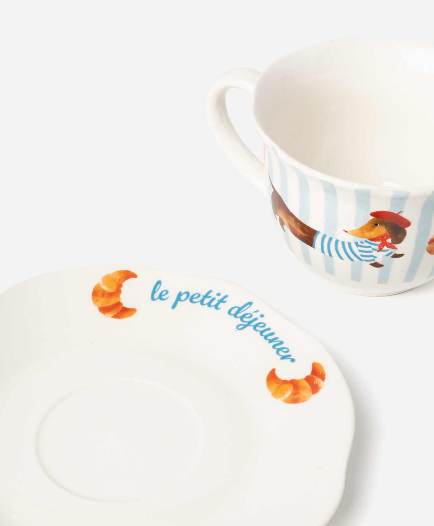 A chávena com pires em grés marca diferença com um dachshund de boina encantador. Perfeita para servir cappuccino, café ou chá. A paleta de cores suave irá destacar-se na tua cozinha e conquistar os teus convidados. O material é durável, fácil de limpar e mantém o aspeto bonito durante muito tempo. Encontra mais peças encantadoras nesta coleção!