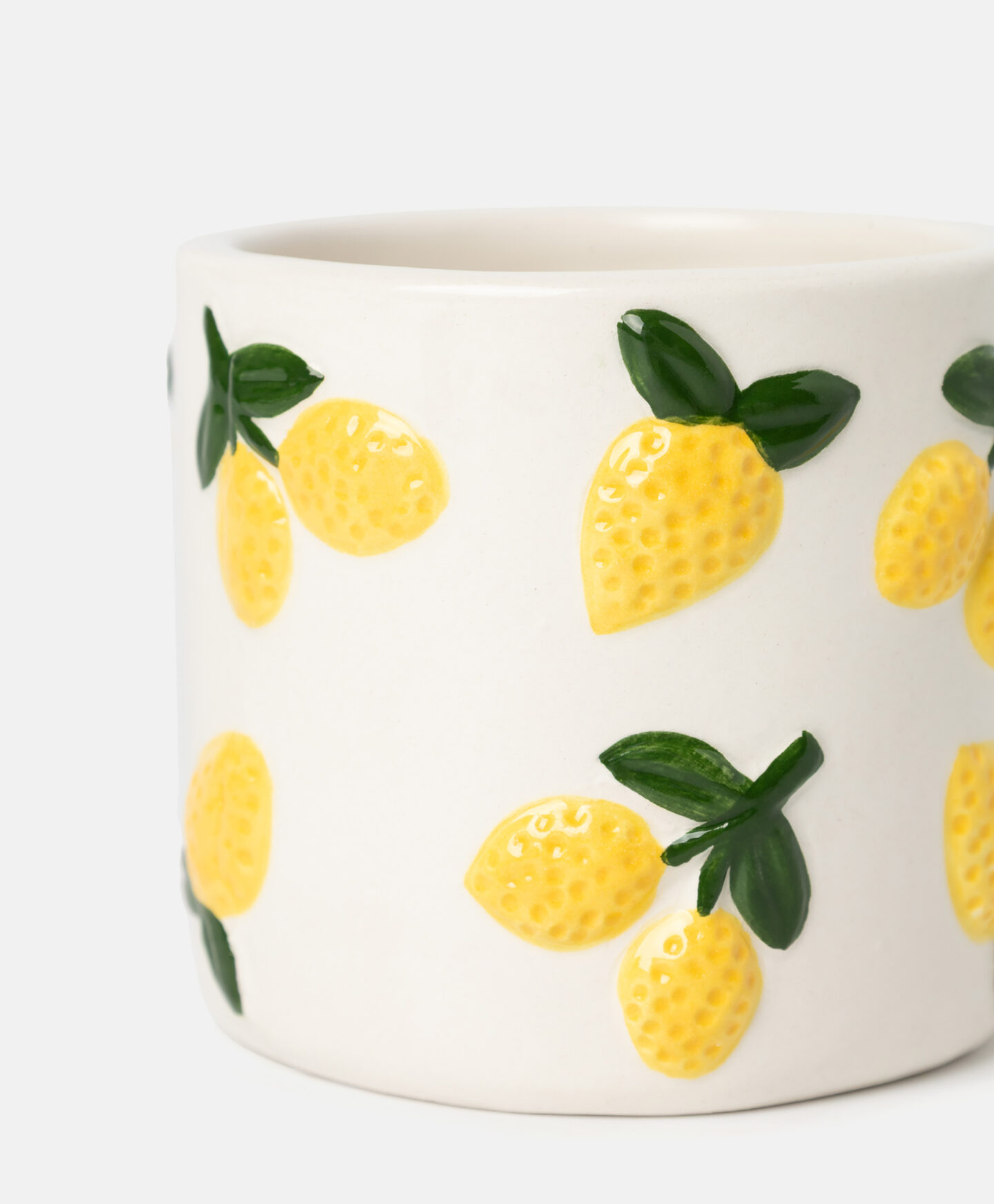 A chávena de café com limões em relevo é encantadora. O design vibrante, inspirado na paisagem mediterrânica, será um destaque na tua cozinha. Produzida em dolomite resistente e fácil de limpar, é um presente perfeito para qualquer amante de café.