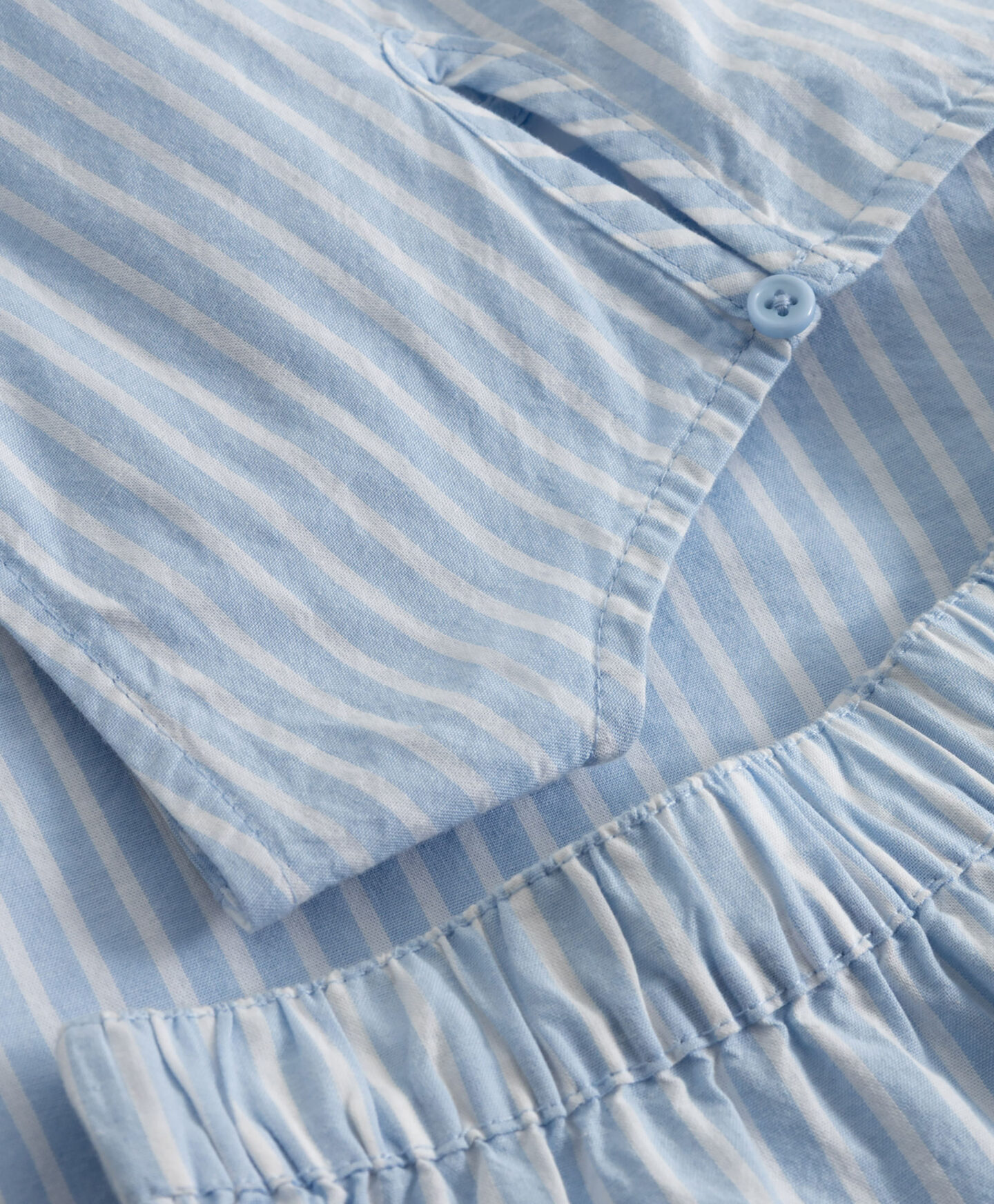 O conjunto em 100% algodão é um clássico de estilo de verão. O padrão às riscas brancas e azuis é intemporal, evoca o ambiente marítimo e mantém sempre um aspeto fresco. Os calções curtos com cintura elástica e o top confortável não restringem os movimentos, permitindo brincadeiras sem limites. O material em algodão é respirável, macio e amigo até da pele mais sensível. Ideal para o dia a dia ou como conjunto de praia.