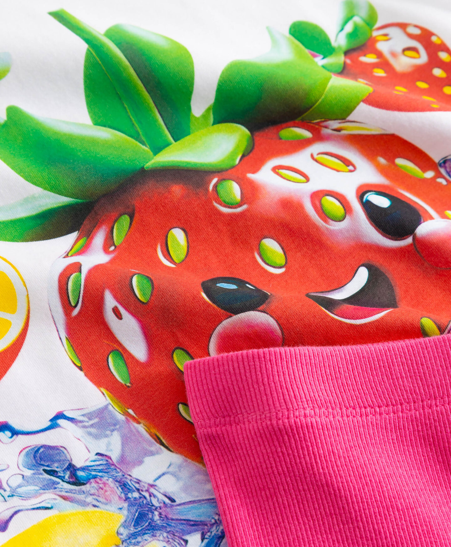 O conjunto com estampado de frutas inclui t-shirt e calções de ciclista. A t-shirt é em algodão macio, agradável ao toque, e a imagem encantadora vai conquistar o coração de todas as crianças. Os calções, com elevado teor de algodão, são elásticos e têm um bom ajuste, sem limitar os movimentos e a brincadeira. Disponível em vários modelos.