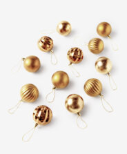 O conjunto de bolas de vidro castanhas envolve a árvore com uma cor quente. A superfície brilhante cria uma atmosfera acolhedora para as noites de inverno. Estas decorações adicionam harmonia ao interior e destacam o carácter mágico das festas.