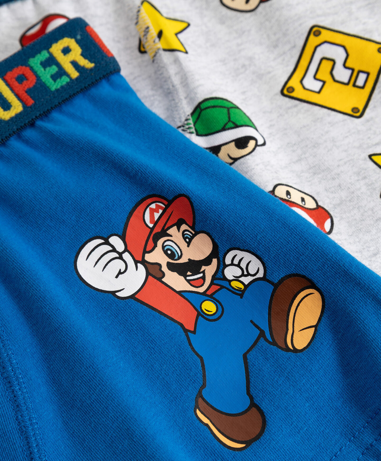 O conjunto de 2 boxers Super Mario combina conforto com design divertido. Cada par tem um padrão diferente com a personagem clássica e inscrição colorida no elástico. Com elevado teor de algodão, são confortáveis e permitem liberdade total de movimentos.