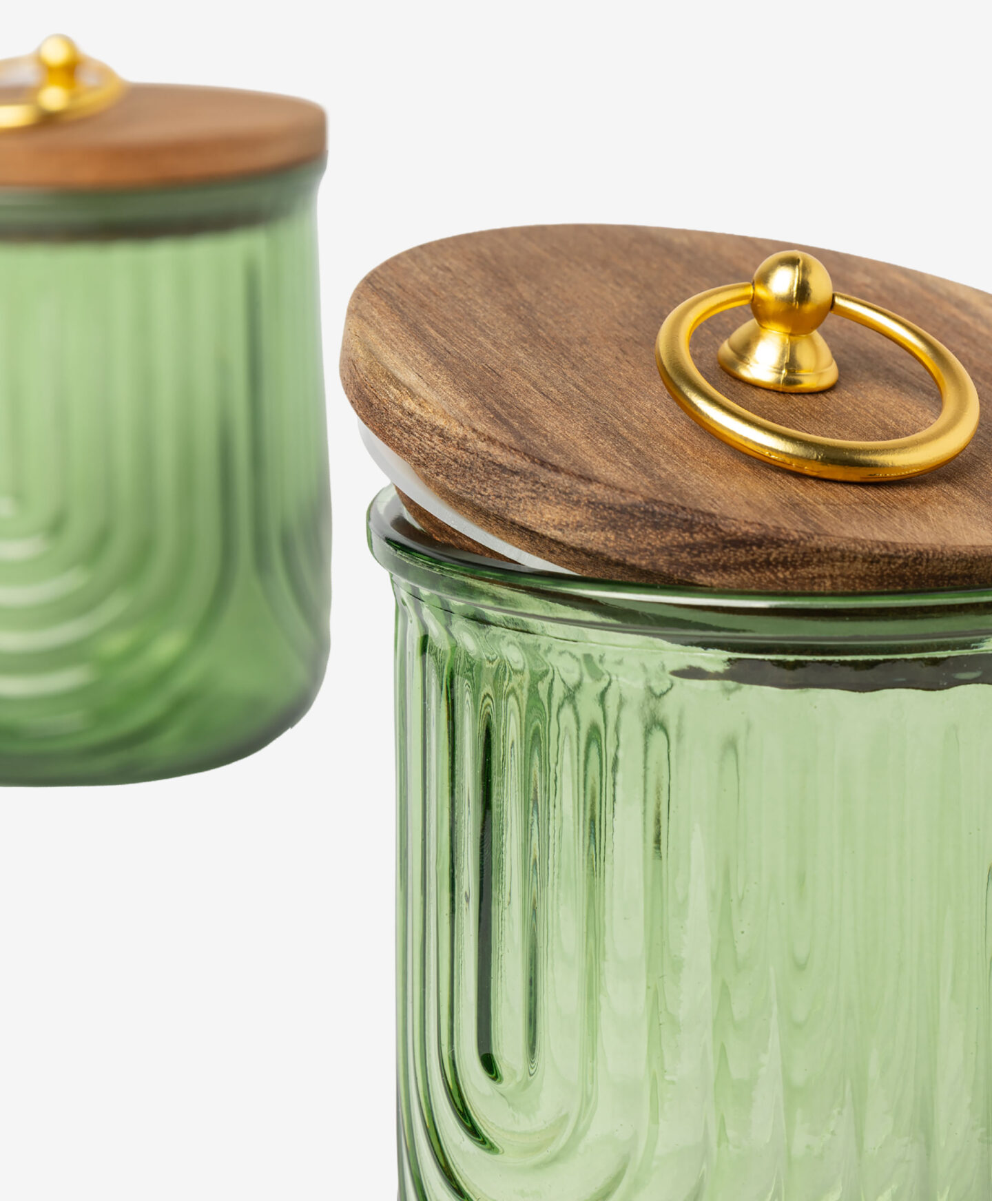 O conjunto de 2 frascos é a solução ideal para quem valoriza funcionalidade aliada à estética. Não só são um acessório prático como também elegante, ideal para decorar a tua cozinha ou casa de banho. A tampa de madeira acrescenta um charme natural e protege o conteúdo na perfeição, mantendo os produtos frescos.
