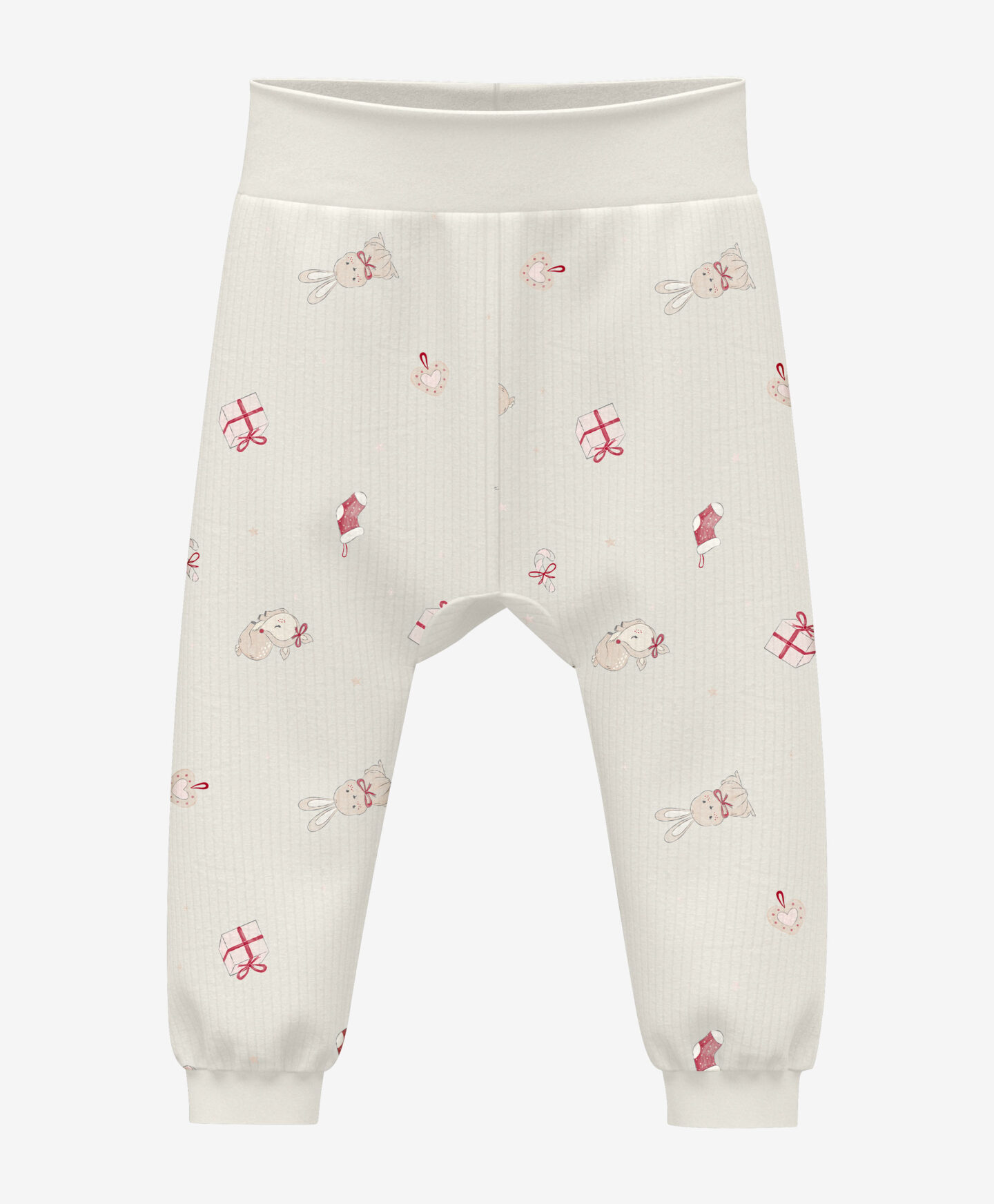 O conjunto de 2 leggings para bebé, em 100% algodão, é prático para o dia a dia. Cada peça tem um design diferente e conforto máximo. Os padrões de Natal com presentes e animais são perfeitos para esta época.