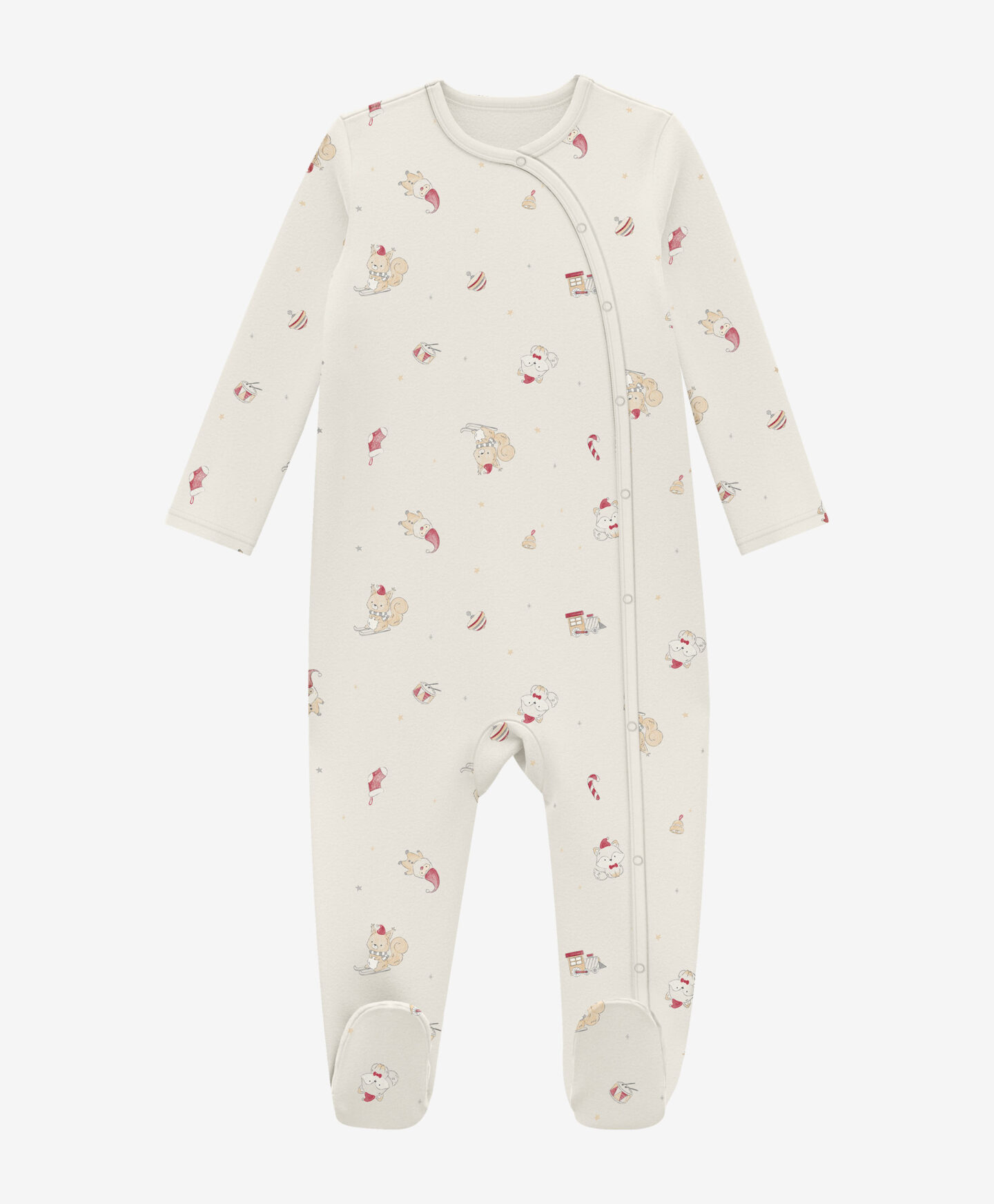 O conjunto de 2 macacões para bebé, em 100% algodão, são úteis para o inverno. Confortáveis e seguros para pele delicada. O tema de Natal adiciona charme e alegria. Os fechos de pressão facilitam vestir e trocar. Inclui dois modelos.
