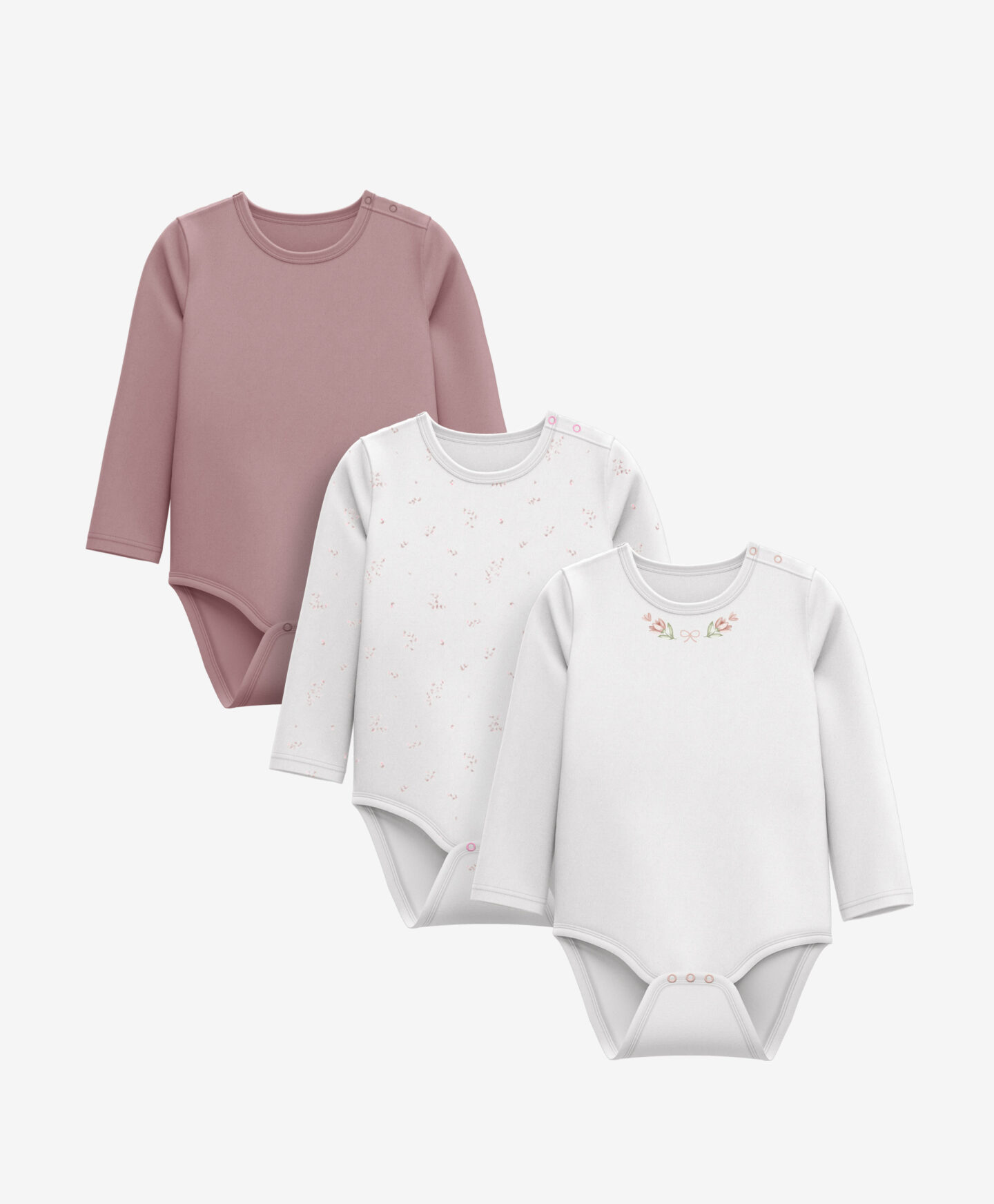 O conjunto de 3 bodies para bebé, em 100% algodão, foi pensado para os fãs da natureza. Em tecido de fibras naturais, são respiráveis, leves e confortáveis de usar. O fecho de pressão facilita a muda da fralda e o vestir. O design com estampado floral é encantador para todas as ocasiões. Disponível em vários modelos.