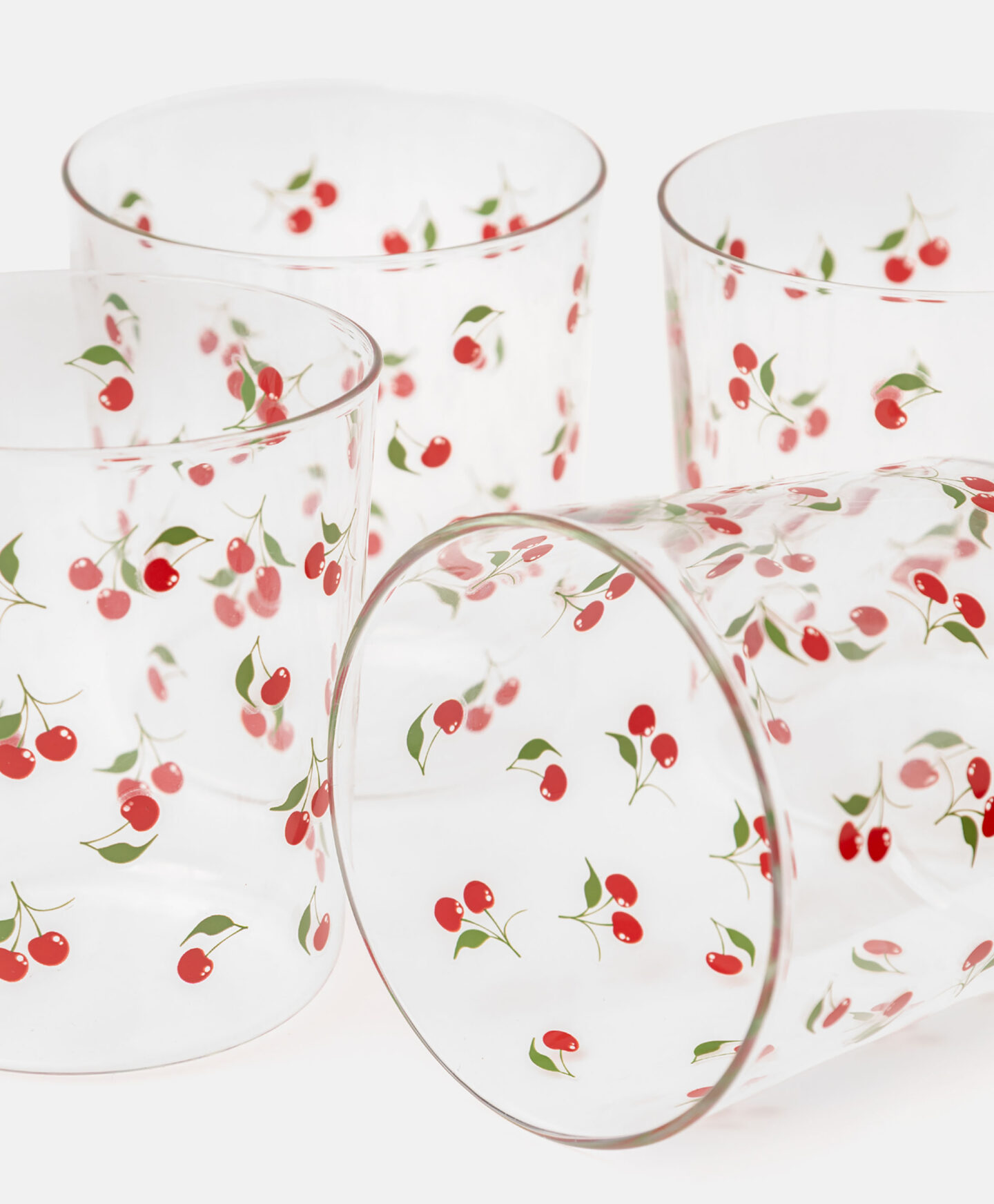 O conjunto de 4 copos com padrão de cerejas vai trazer o verão para a tua cozinha! O vidro borossilicato é durável, resistente a altas e baixas temperaturas e fácil de limpar. Perfeitos para servir as tuas bebidas favoritas!