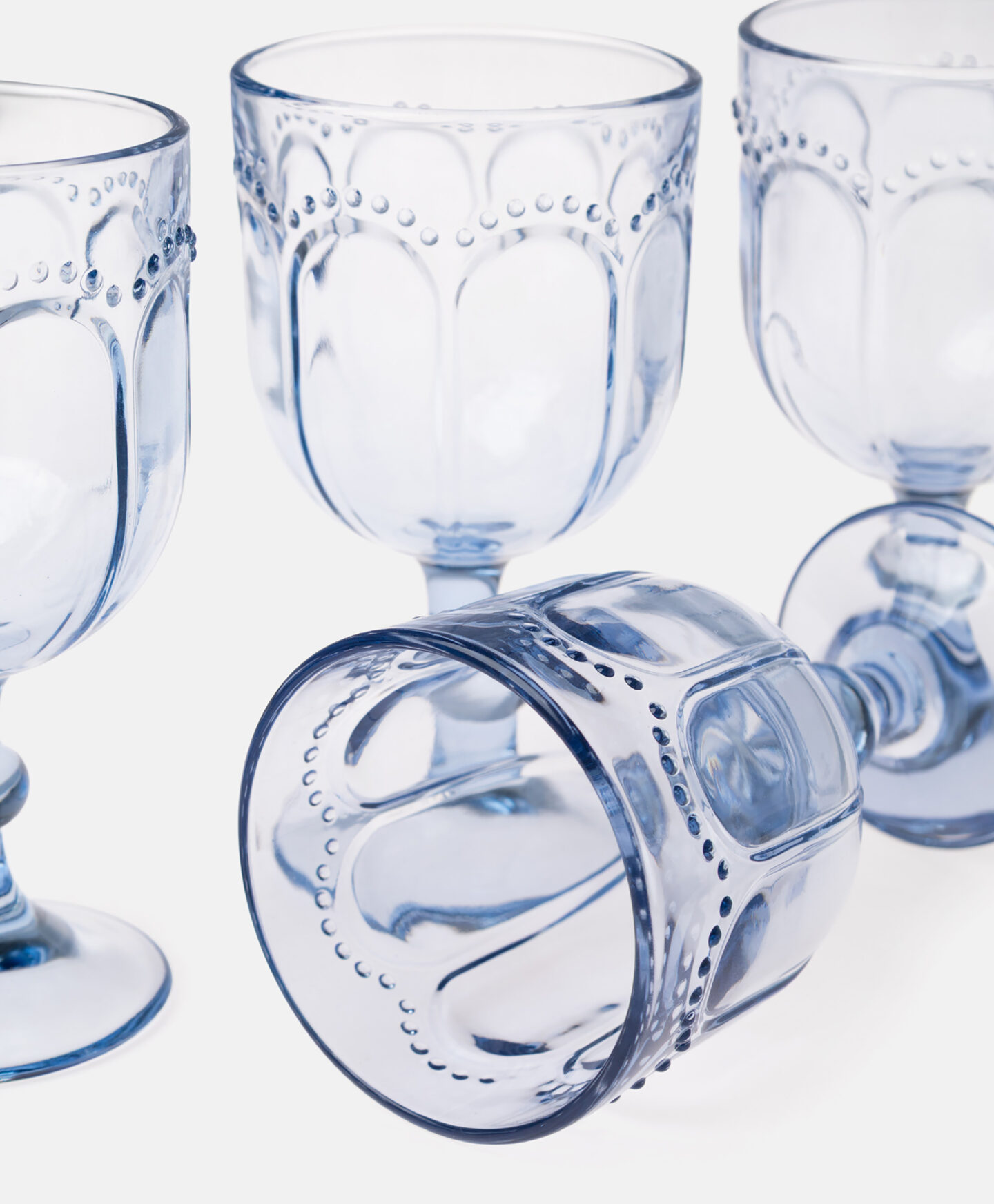 O conjunto de 4 copos de vinho vai destacar-se nos armários da cozinha. O vidro reflete a luz e acrescenta elegância à mesa. É durável e resistente a riscos.