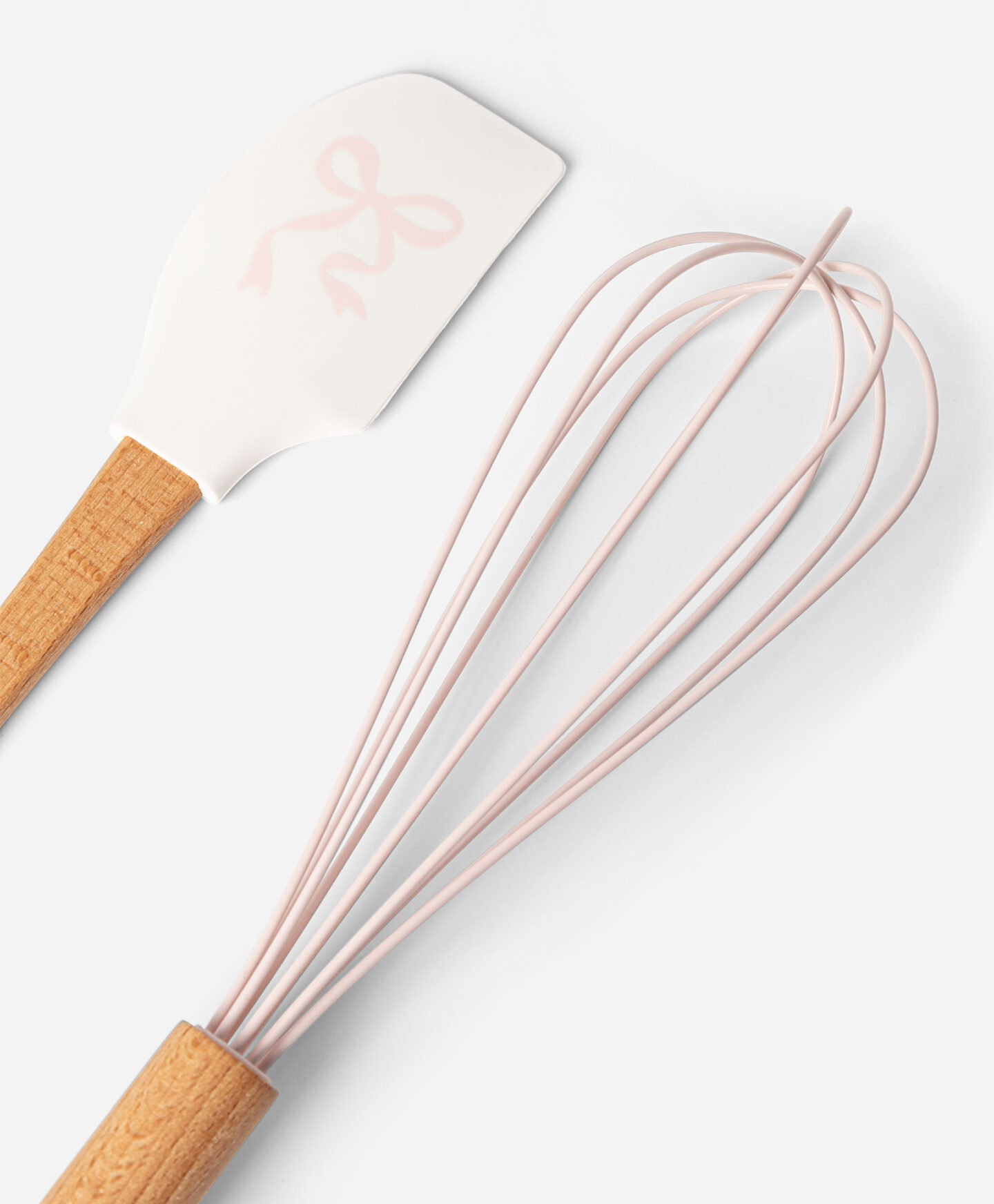 O conjunto de pastelaria é resistente a riscos e fácil de limpar. A tigela em porcelana New Bone China, é bonita e as pegas facilitam o uso na cozinha. Inclui uma espátula com laço e um batedor, permitindo desfrutar de cada momento na cozinha.
