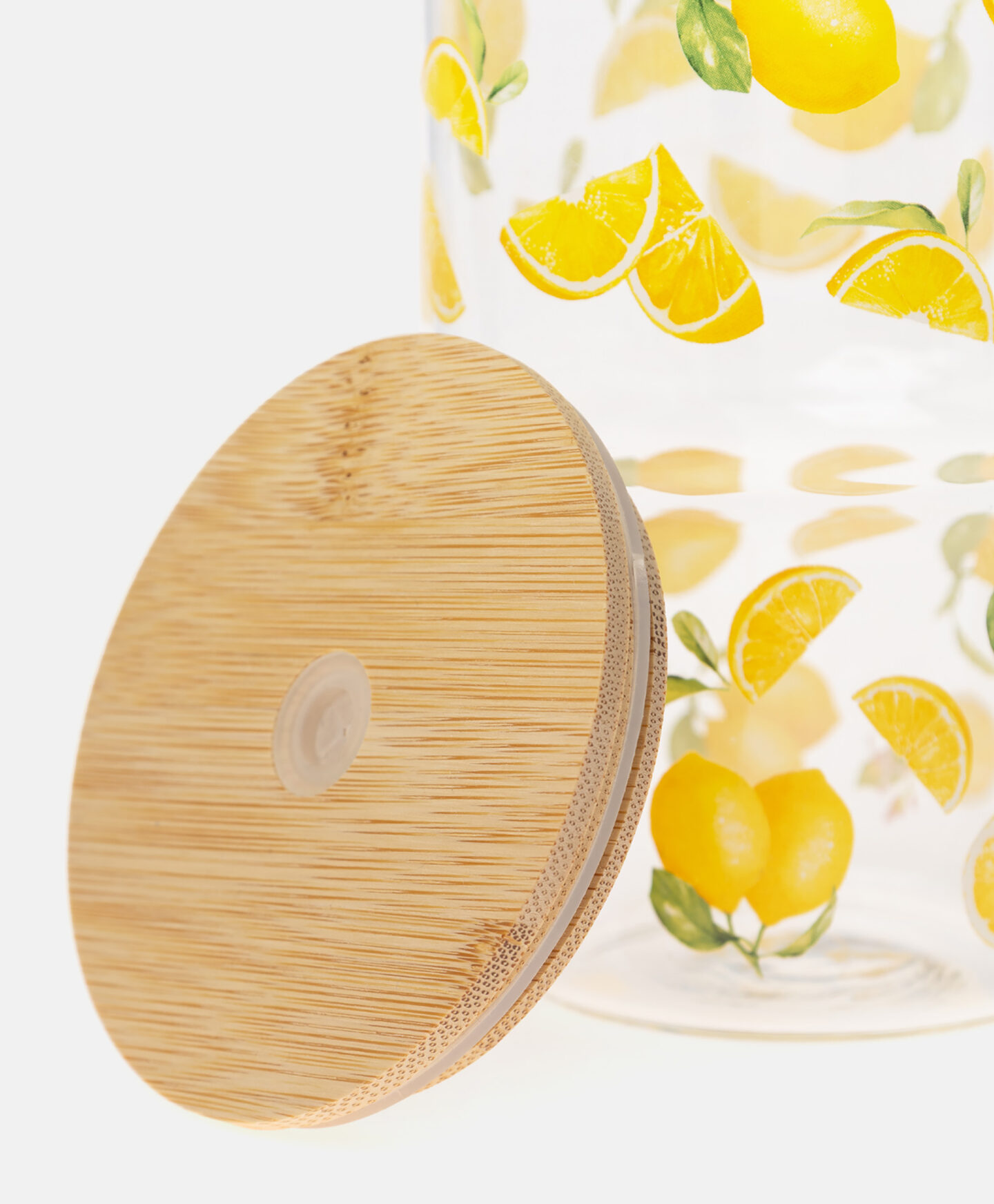 O copo com padrão de limões é perfeito para quem gosta de ter a bebida sempre à mão. A capacidade de 800 ml permite preparar maiores quantidades sem necessidade de reabastecer com frequência. O vidro não altera o sabor nem retém odores e é fácil de limpar.