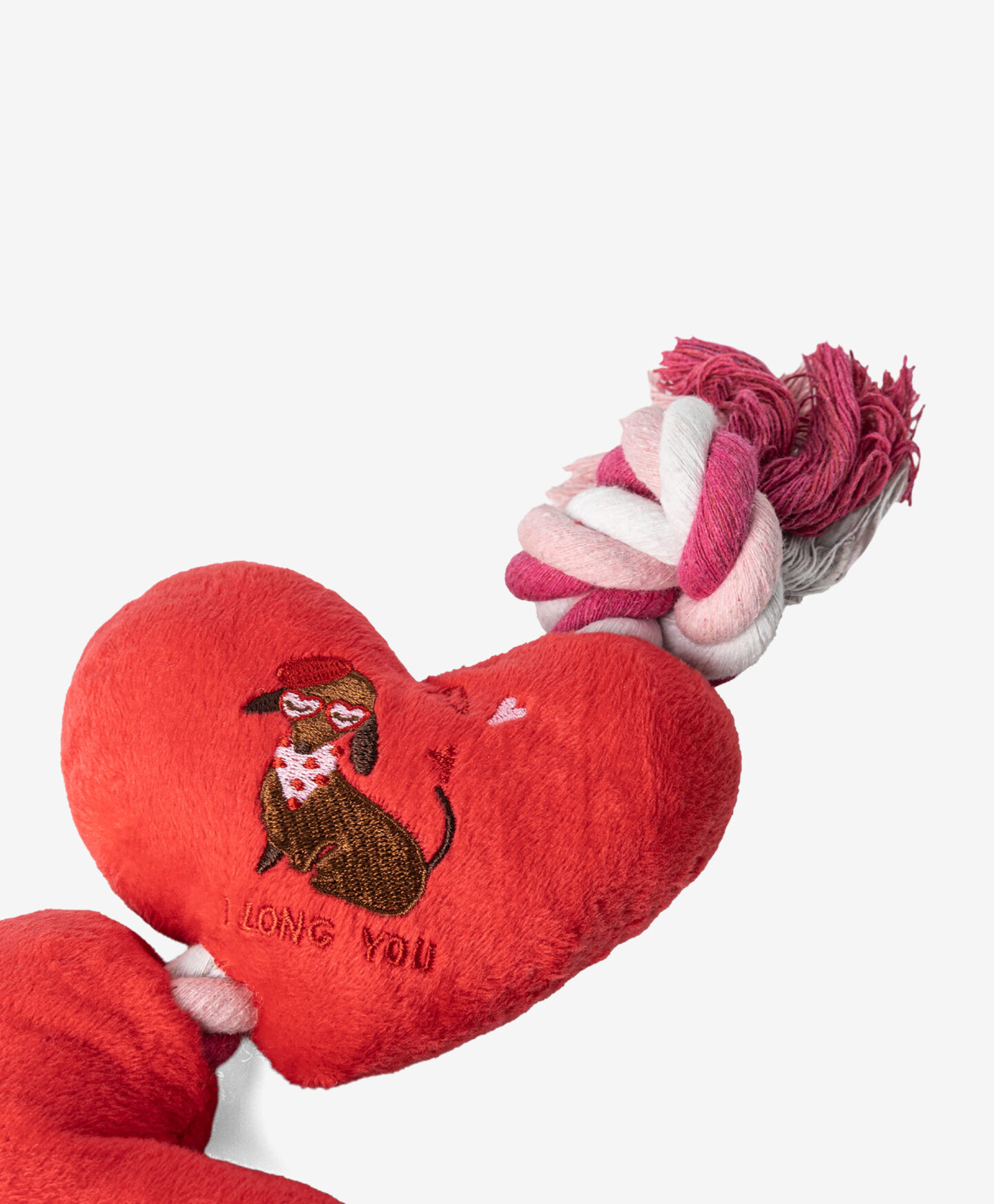 A corda de brincar para cão, com dois corações, é uma ótima opção para os patudos que adoram brincadeiras ativas. Um dos corações emite som ao ser apertado, estimulando e incentivando a interação. O material é resistente, proporcionando conforto durante as brincadeiras. É uma ótima forma de manter o animal ocupado, mas também passar tempo de forma divertida.